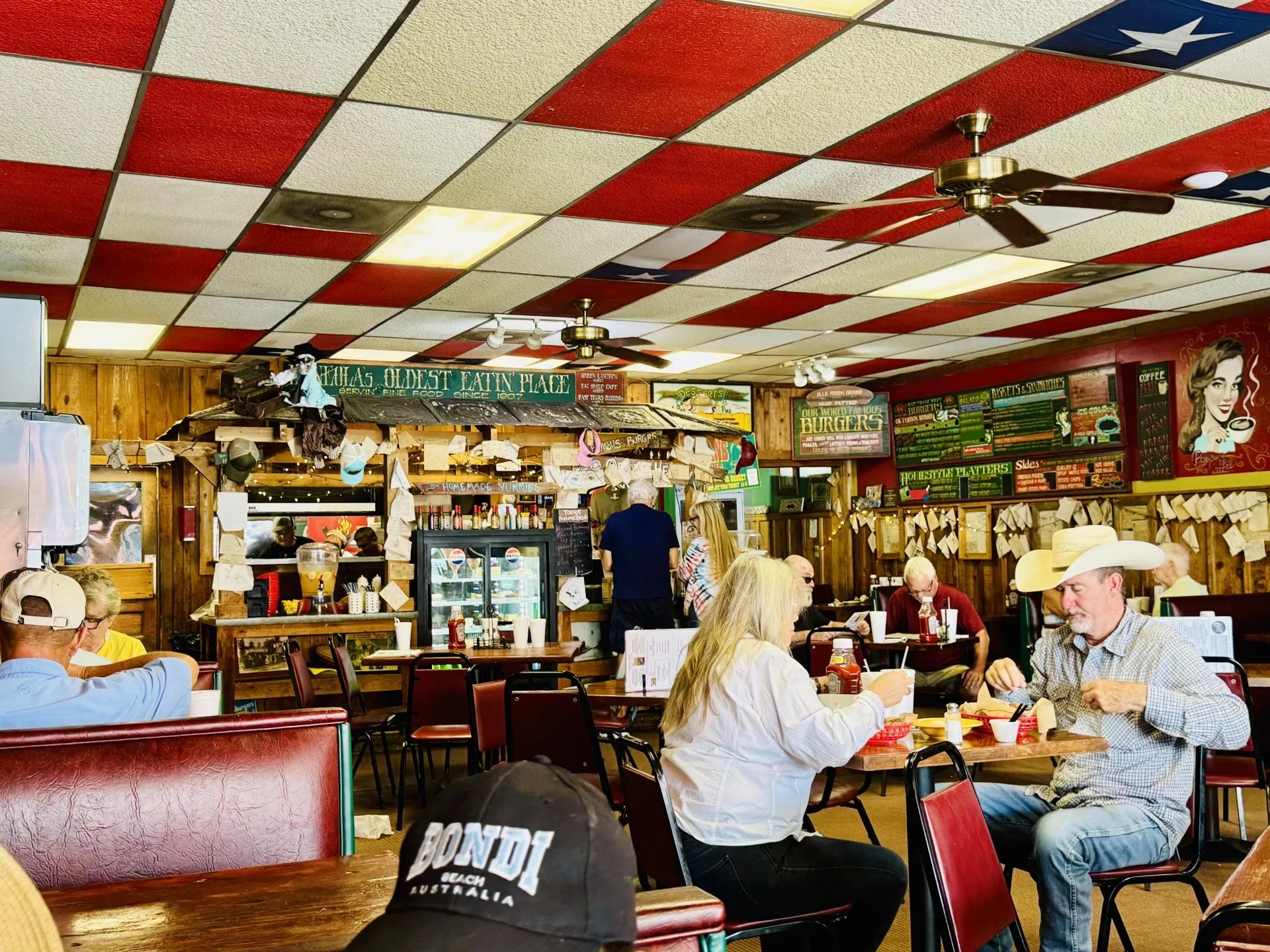 Porch cows and shameless plugs aside, we came to Mineola for the historic East Texas Burger Co., which has been, in their words, “where locals, hobos, and Bonnie and Clyde have dined for nearly 100 years.” The East Texas Burger Co. took over this historic space in 1984, but this property has been feeding Mineolans nearly since the beginning of Mineola’s history.