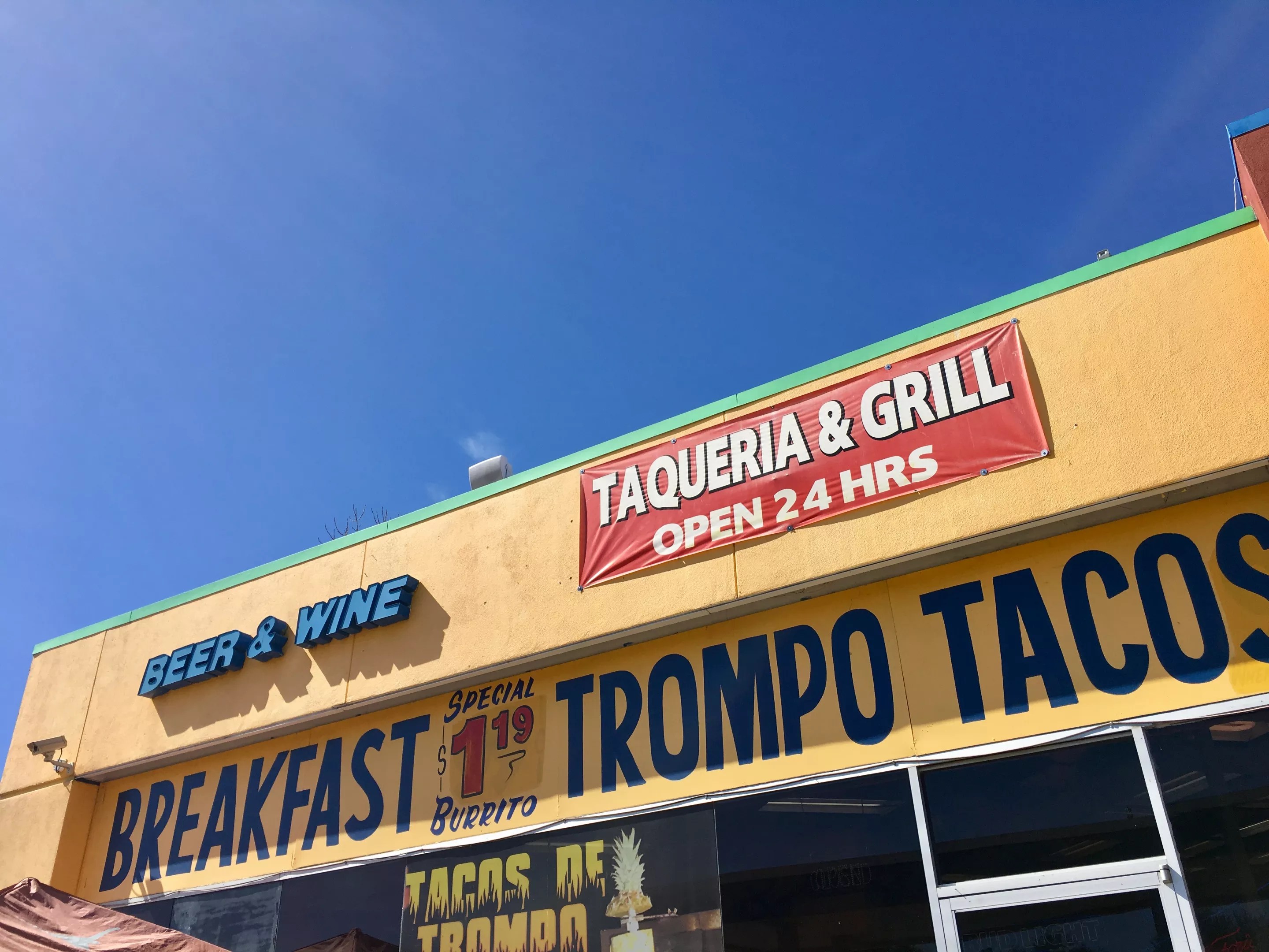In the western wing of the Chevron gas station, Eduardo Mora sweeps up after the lunch rush. A load of customers had just whooshed through, making a serious dent in the trompo, the blush-red pork tornado spinning quietly in front of a wall of heat, as slow and balanced as a music box ballerina. In a few minutes, Mora will stack the red sheets of marinated pork butt again for the afternoon crowd. It’ll take a solid hour if he’s focused solely on neatly stacking the layers.