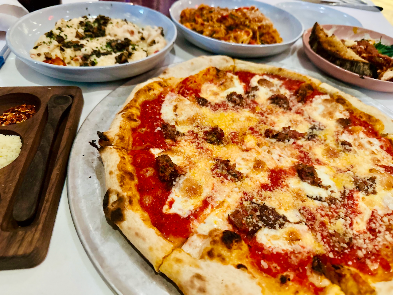Dinner spread at Sassetta inside The Joule hotel