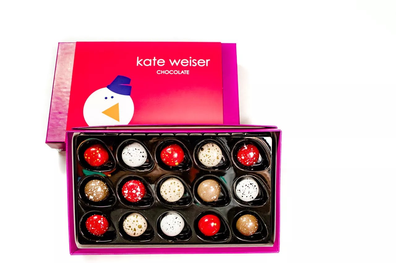 Maker of the one and only Carl the Snowman (a melting chocolate bomb), Kate Weiser’s gift sets are stunning. Almost (almost) too pretty to eat. Only if they weren’t so dang delicious.