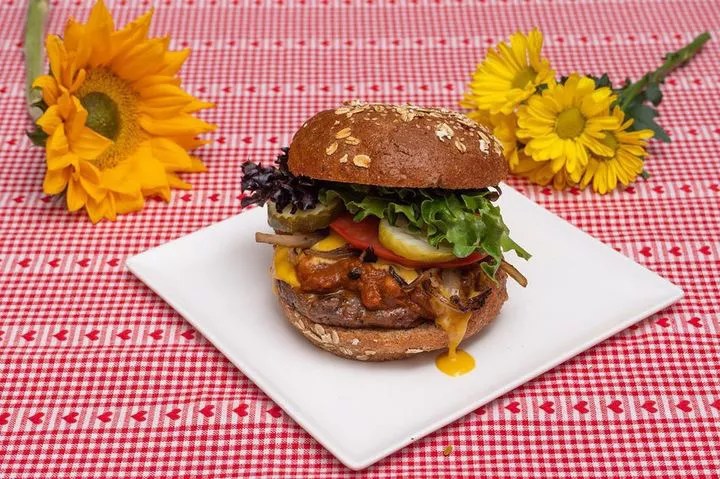 8024 Spring Valley Road If you’ve sampled Nuno’s plant-based tacos, quesadillas or Oatly shakes, it’ll come as no surprise that this hole-in-the-wall shop serves up a pretty mean vegan burger too. Try the Mexican chopped cheeseburger, stuffed with vegan bistec ranchero protein, grilled onions and fried jalapenos. A blanket of vegan cheese adds another colorful layer to the two-patty wonder. The Michael Scott Fishless burger has a vegan fish cutlet topped with homemade tartar sauce. Barbecue, American ham and fried chicken burgers spruce up the menu as well. They’re all nested inside Nuno’s signature buttery brioche buns.