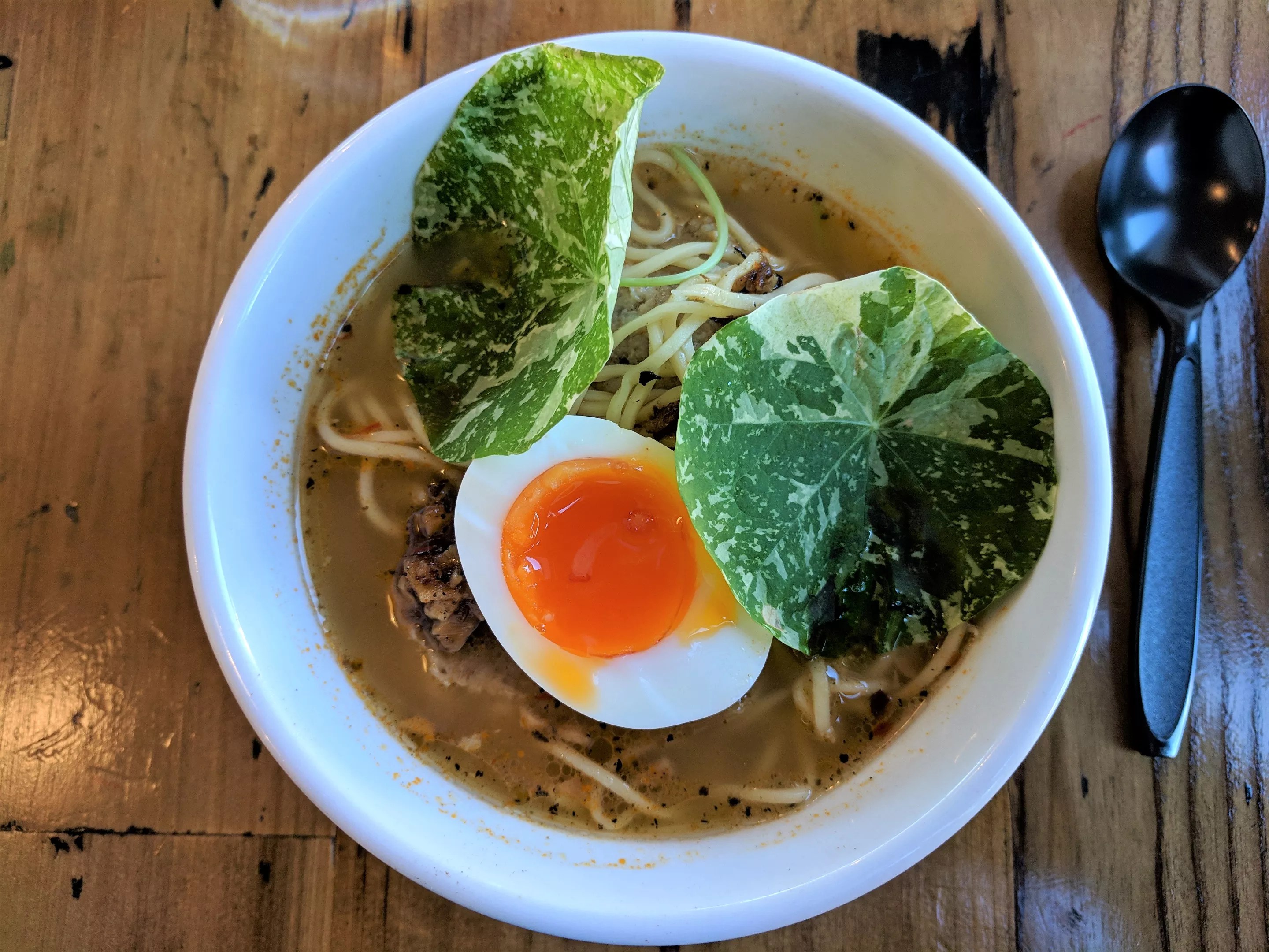 A noodle bowl with giant lion’s head pork meatballs and chile pepper broth. Yes, the egg yolk was really that color.