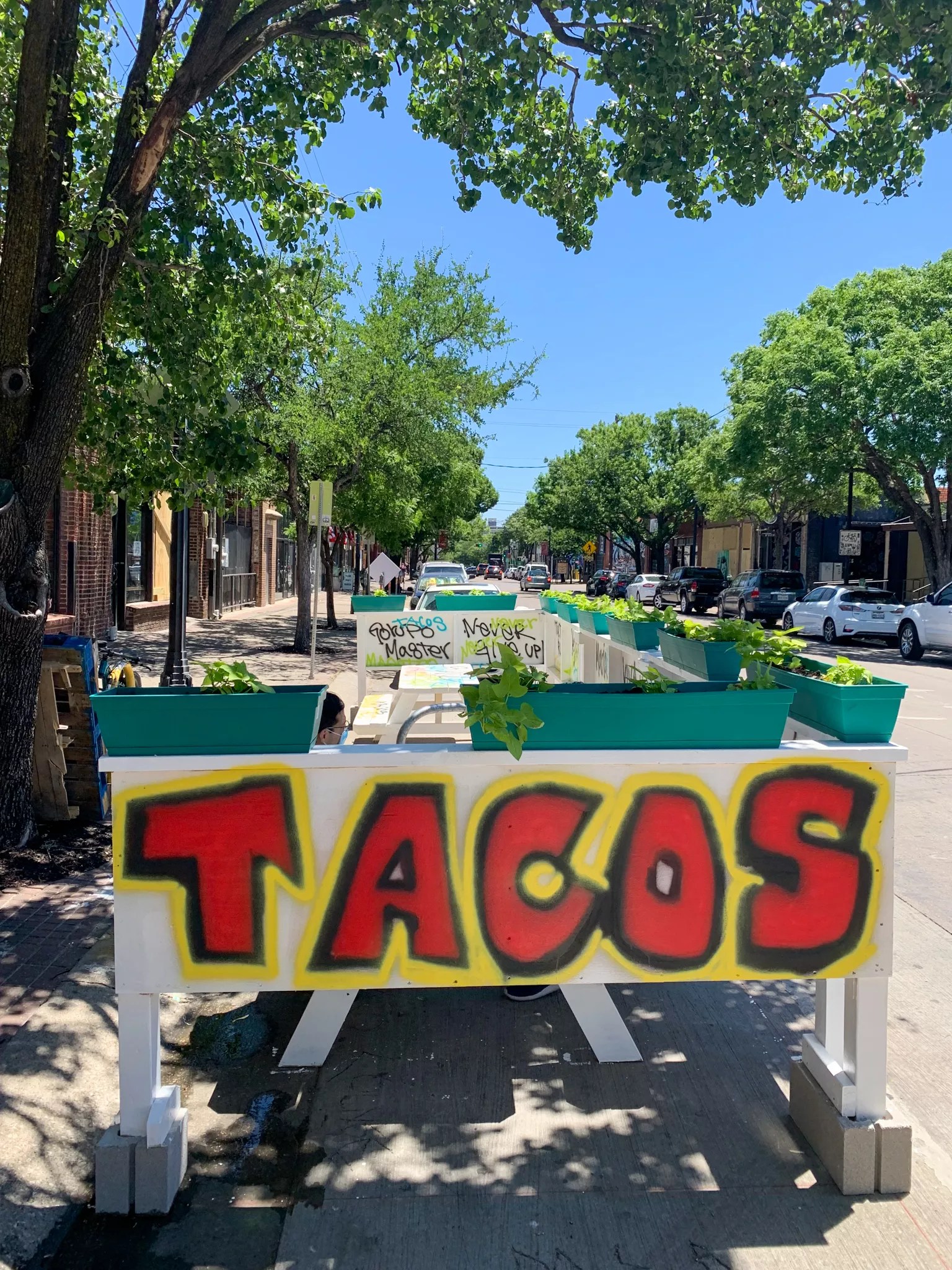 And one of those moments came while I was sitting at a table on Main Street in Deep Ellum. A makeshift patio has taken over an area adjacent to the curb in front of Revolver (where parking wasn’t previously available anyway) to allow two picnic tables, which are spaced very well apart from each other.