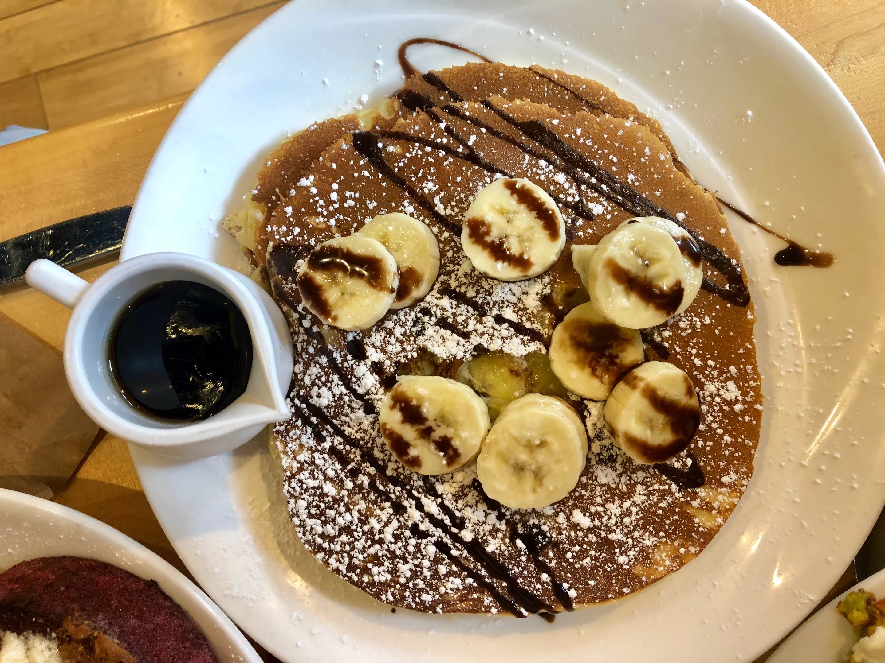 This is one of those menus where you can basically upgrade every item. An upgrade to the Nutty Monkey Pancakes ($3 upgrade, $12.50 for the entree) is worth a try. A whole plate of large pancakes (yes, as a side dish) is one of those plates that gets people lifting their heads to get a closer look as it passes by on its way to a table.