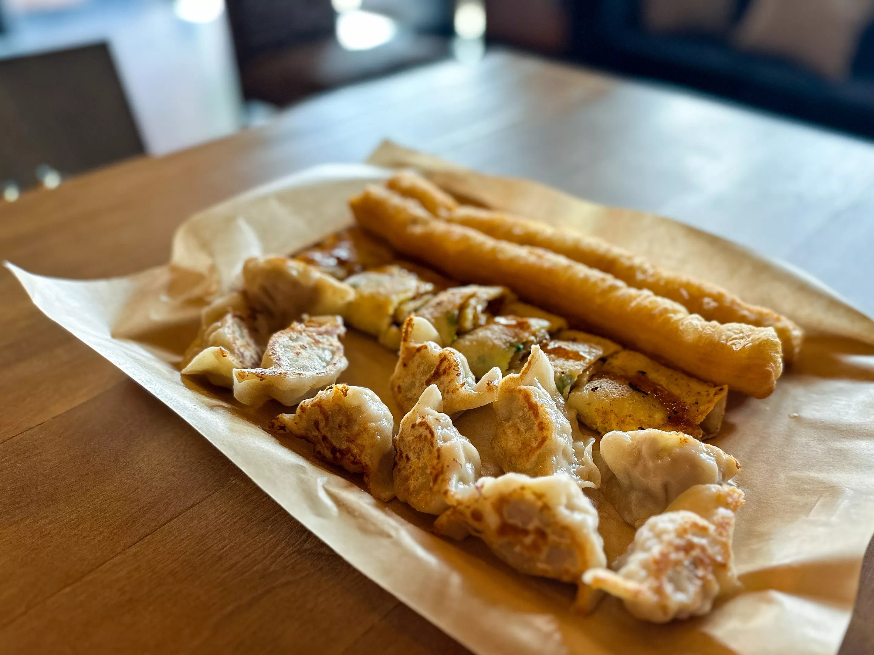 Potstickers, pancake and fried bread are just three of the snacks available.
