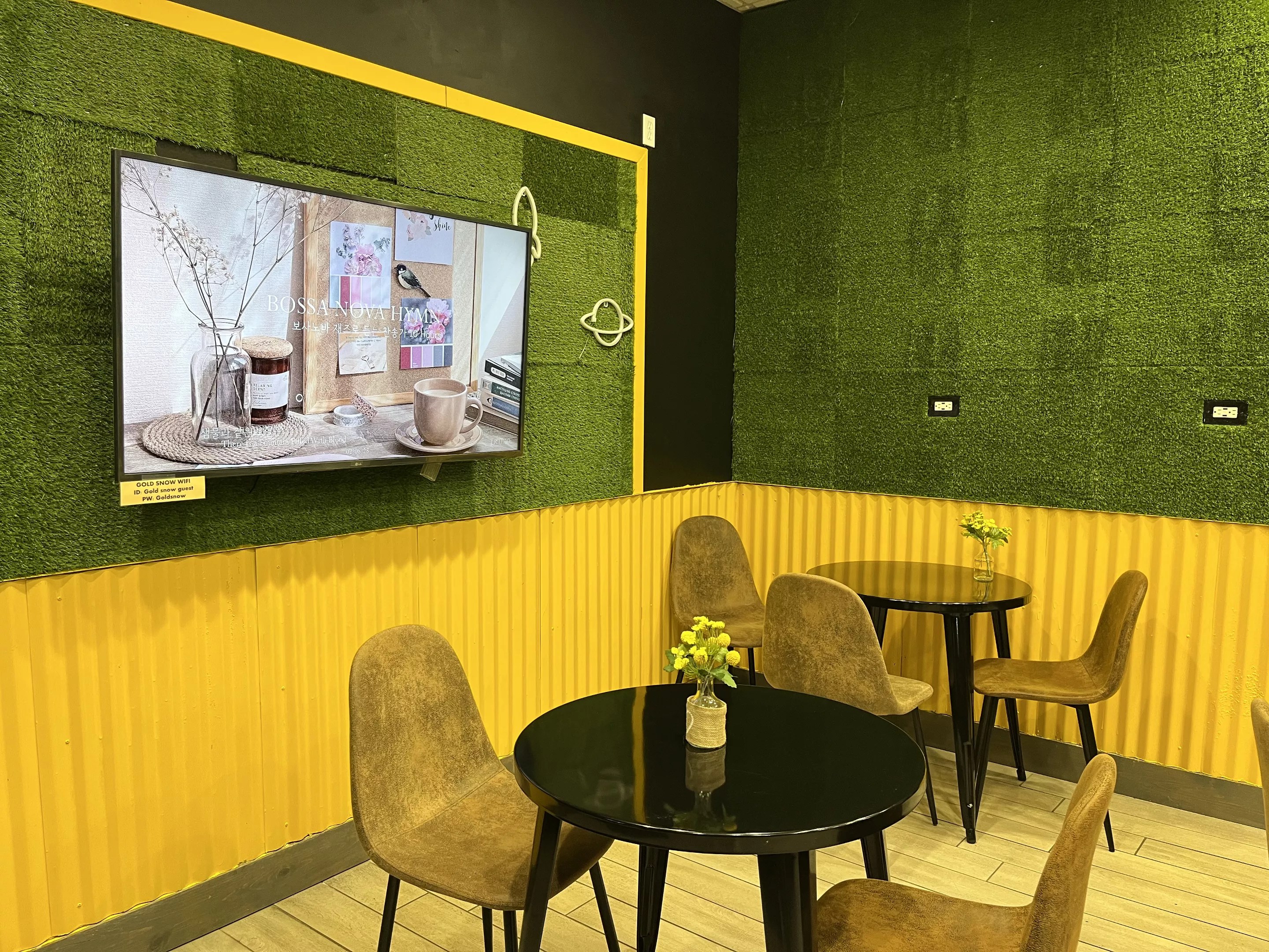 The spot is tucked away adjacent to an old gas station but the inside is cozy and inviting. The walls are bathed in yellow and green with neon signs that hug the back wall. Grab a seat at a table to take in the menu; there are all types of Asian desserts to choose from.