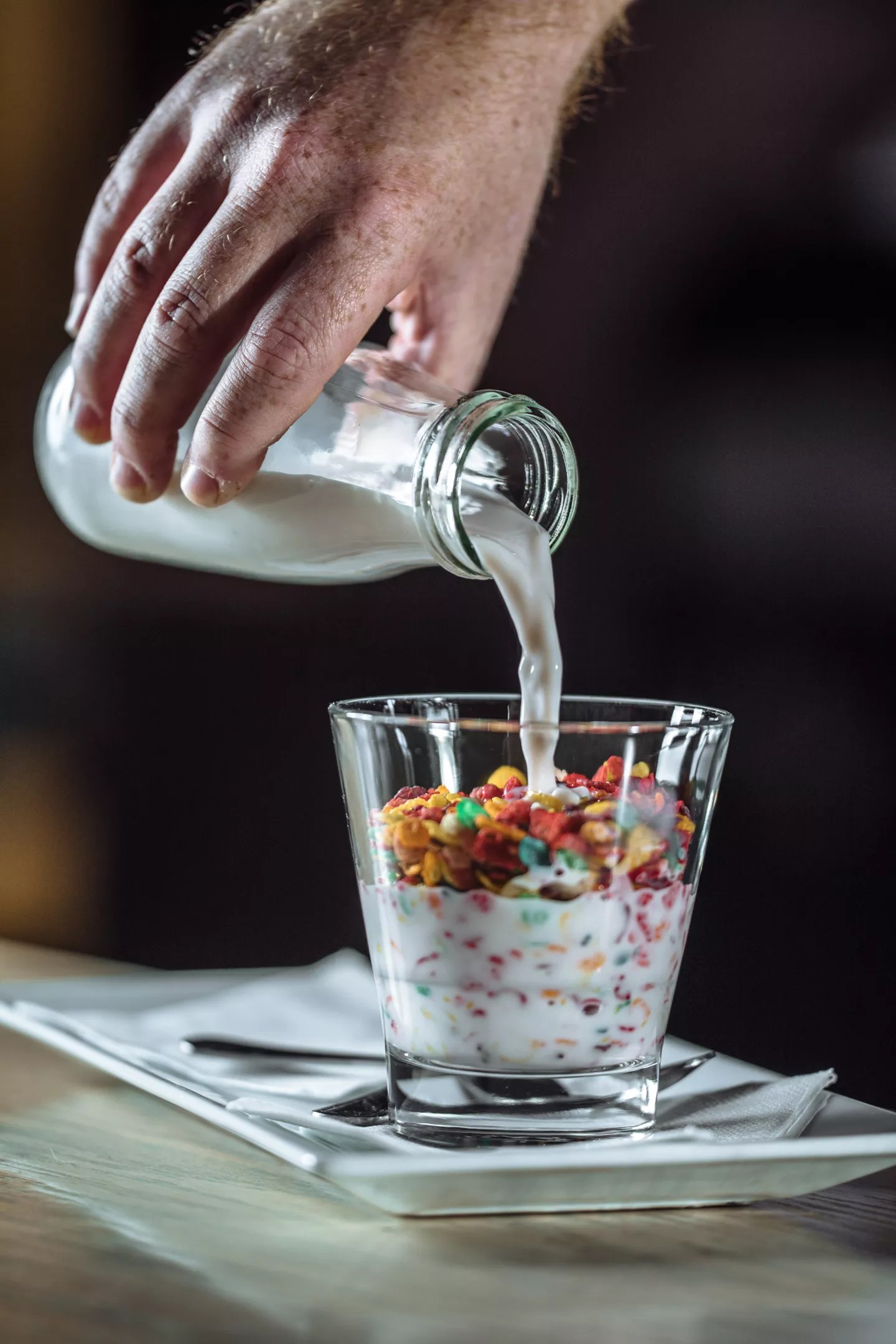 “After you eat the cereal, you take the last of the ‘milk’ and drink it like a shot,” Reyna says. It’s like getting two shots of the good stuff with breakfast. The only thing missing is the Saturday morning cartoons.