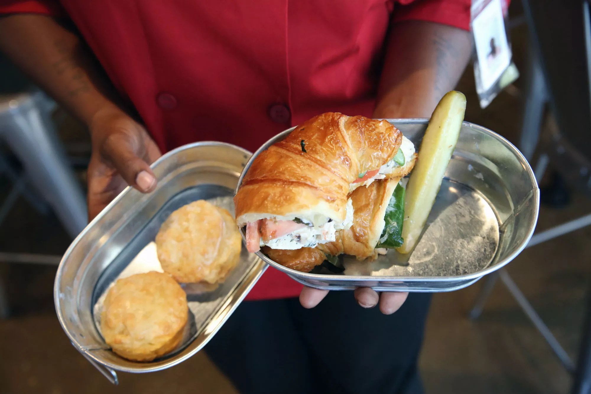 Dorsey and company swear by all the items on the menu, but there’s a considerable consensus on the favorites. The herb chicken salad sandwich is creamy and heartily seasoned, scooped between a flaky croissant. The biscuits are soft and buttery and are served all day with a side of deliciously sweet honey butter. But if you come early, you can pick up some biscuits and gravy for breakfast.
