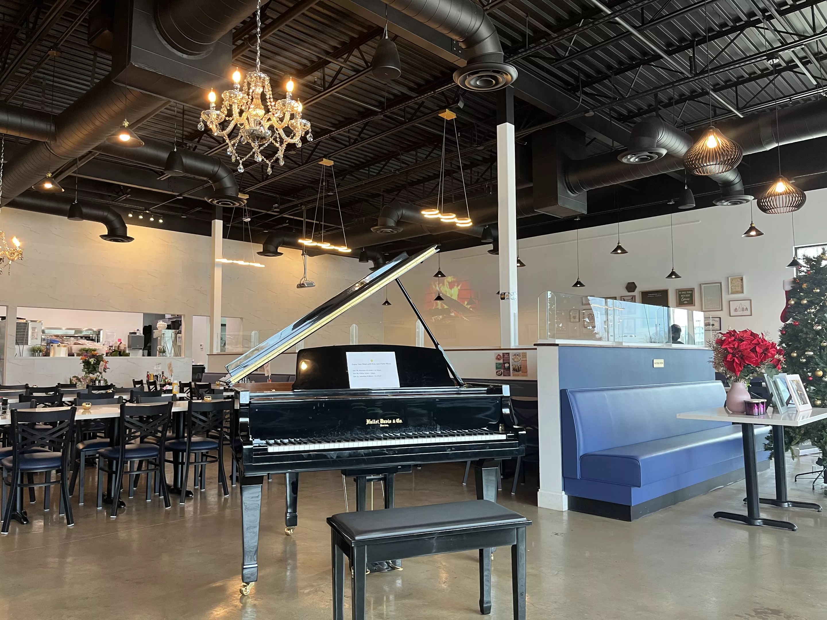 The piano at the center of the dining room is used for live piano performances on special occasions.