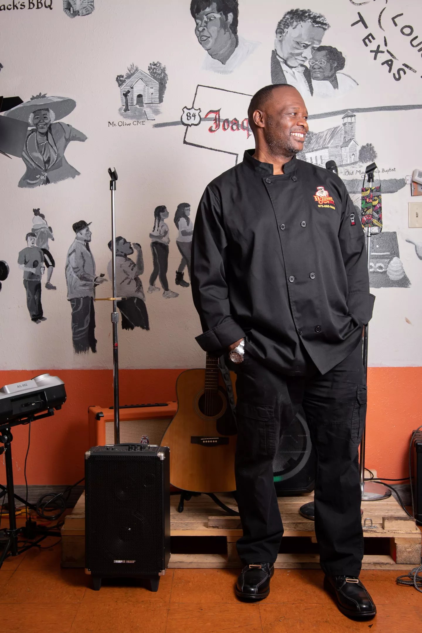 Jackson, a left-handed bass guitarist, has played in bands, at church and with his family; most of his siblings are musicians, too. He grew up in the tiny town of Joaquin, Texas, just 4 miles from the Louisiana border, surrounded by talented barbecue smokers who cooked from scratch.