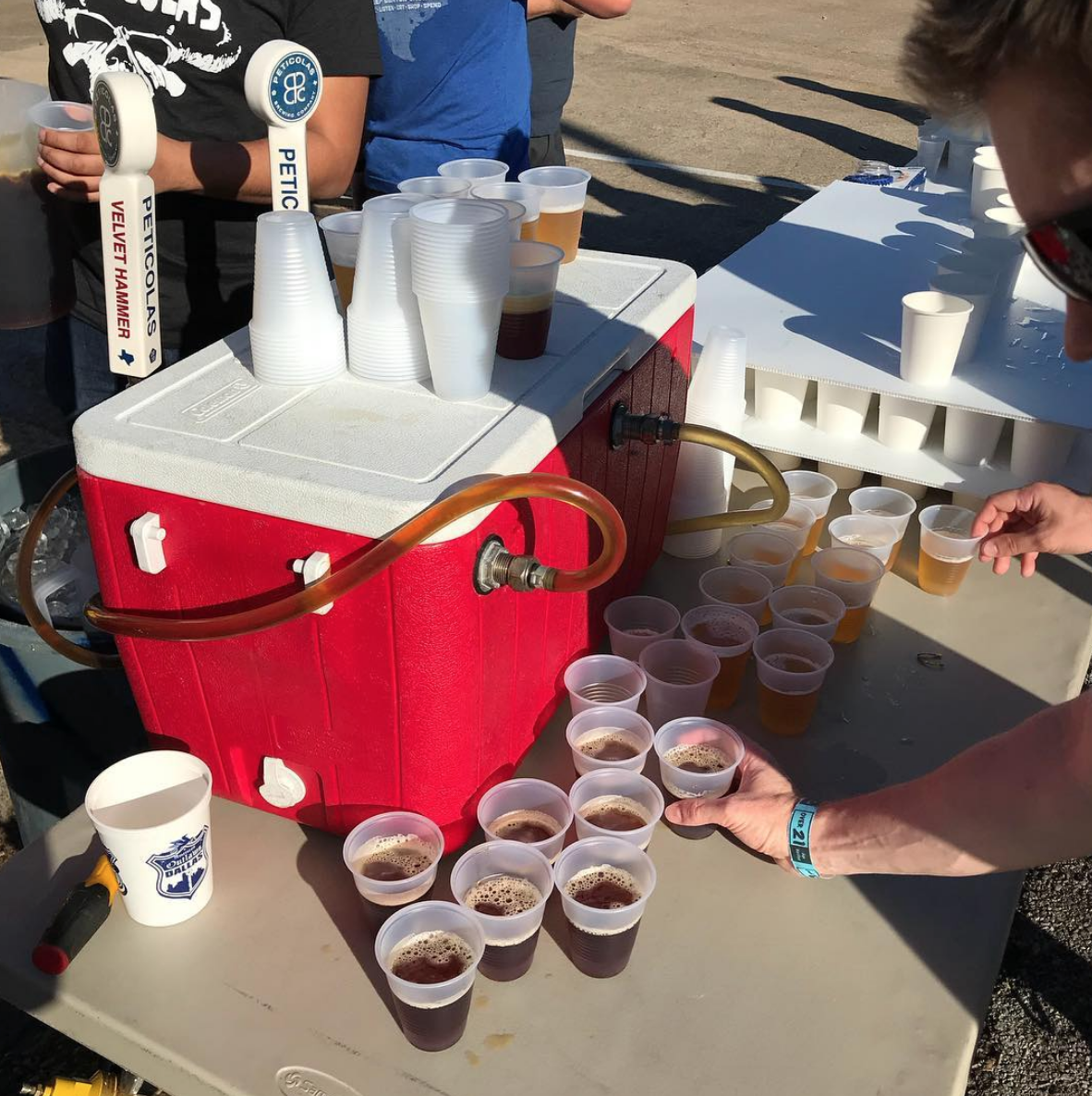 Nearing the halfway point of last weekend’s Velvet Hammer 5K at the Peticolas brewery inside the Dallas Design District, I caught a glorious glimpse of volunteers holding out small white cups of water just up ahead of me. As intensely needed as those life-giving helpers were, their usefulness paled in comparison to another fellow manning that same station. That MVP was pulling cups of Golden Opportunity kolsch and even the race’s namesake imperial red ale and handing them to those of us needing a serious kick with our hydro relief.