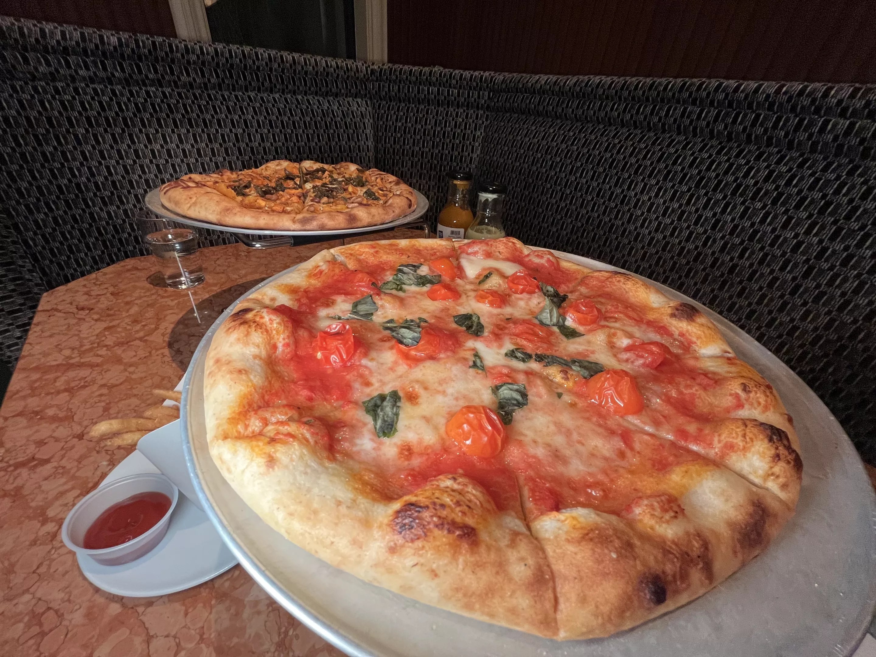 Three side-by-side menus boast different selections of wood-fired pizza, burgers, coffee and cafe pastries. Regardless of the time of day, it’s hard to say no to an order of the classic sourdough pizza. The “Hey Butter Butter” offers a hearty pizza base of brown butter topped with butternut squash, melted mozzarella, sage and pine nuts. Sweet toppings lead into a spicy punch of hot honey at the end and a chewy-yet-crisp sourdough crust. Other options like the Maglia Rosa – The Meteor’s take on a classic margherita – and the Meatier, dotted with nduja and sausage, add to the variety.