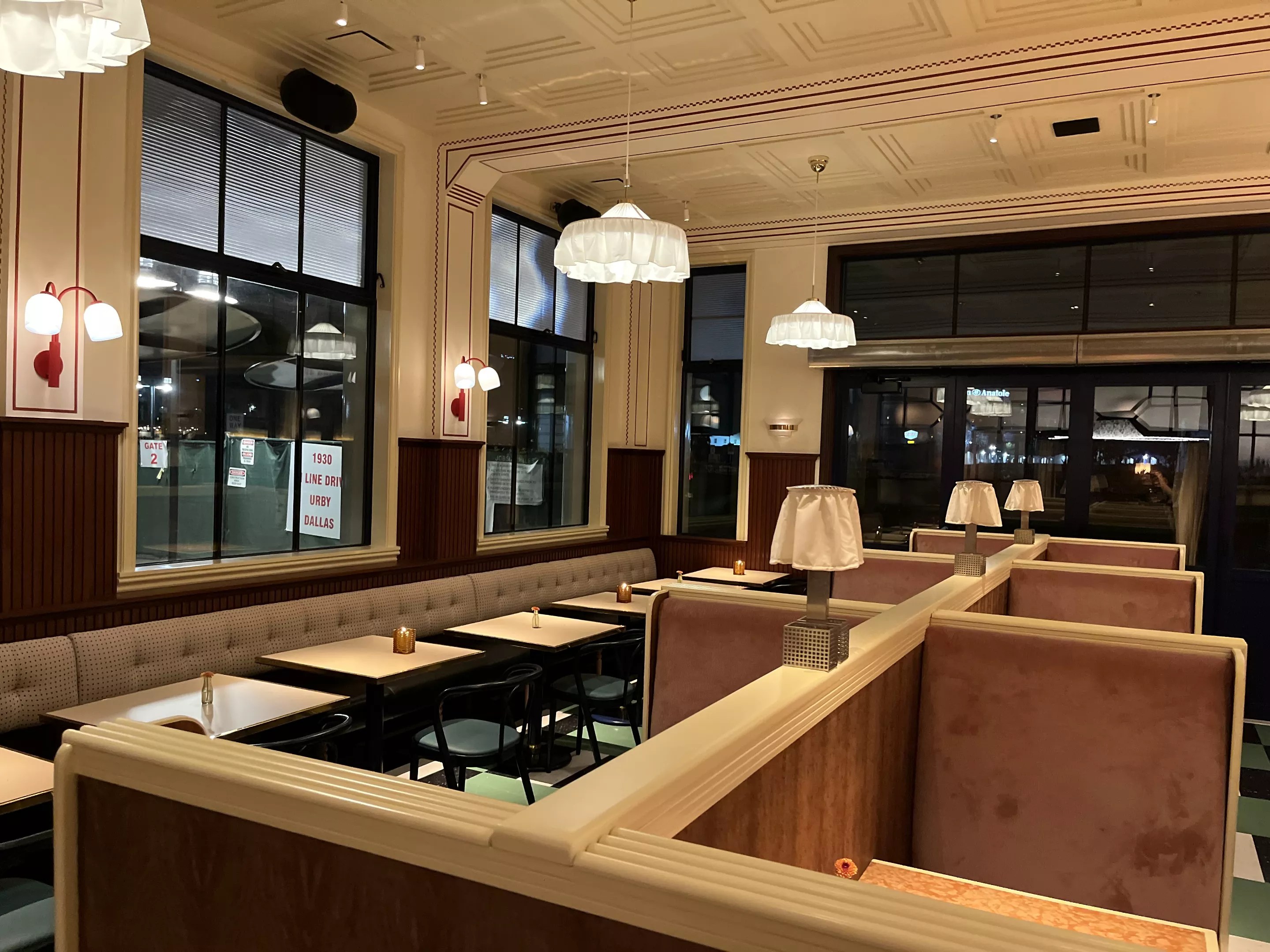 The retro setting is visible even from outside the cafe, through floor-to-ceiling windows. Classy decor includes warm lighting, sleek bar seating and retro tiled flooring that gives the location an almost vintage appearance. The space is split into thirds, with a formal dining room, extensive bar and even a lounging area dotted with private couches. Just deciding where to sit is a struggle in itself. Bar seating is a convenient distance from the wine selection, although a dimly lit lounge is a nice room to linger after your meal. The space, covered in vintage posters, drawings and other trinkets, makes for an almost refreshing deviation from the typical Dallas coffee shop decor.