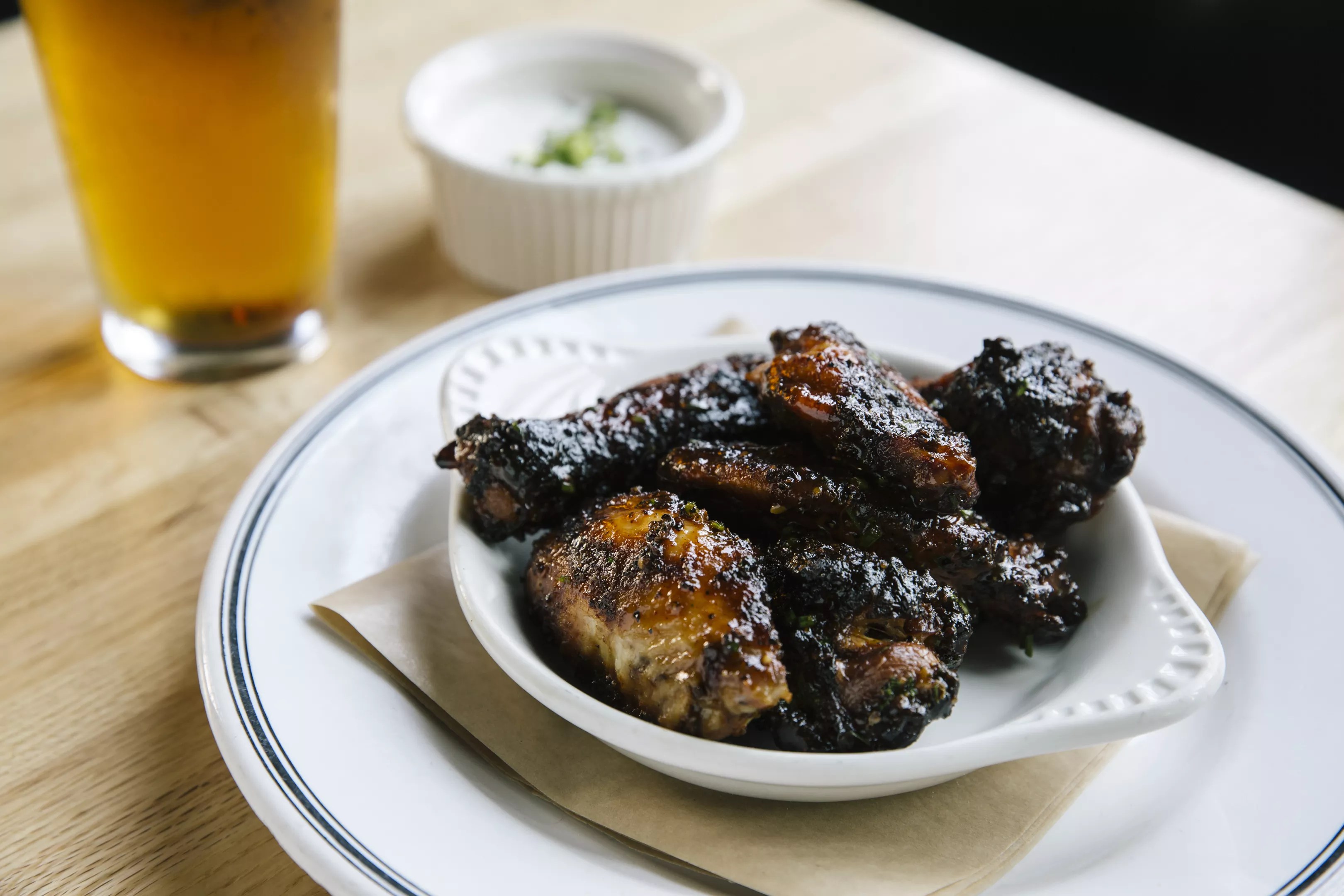 This Kansas City barbecue spot was inspired by extravagant fair food and is serving “smo-fried” wings this fair season. The process to make these wings is more complex than usual: They’re brined, smoked, then fried and coated in a sweet barbecue wing sauce.