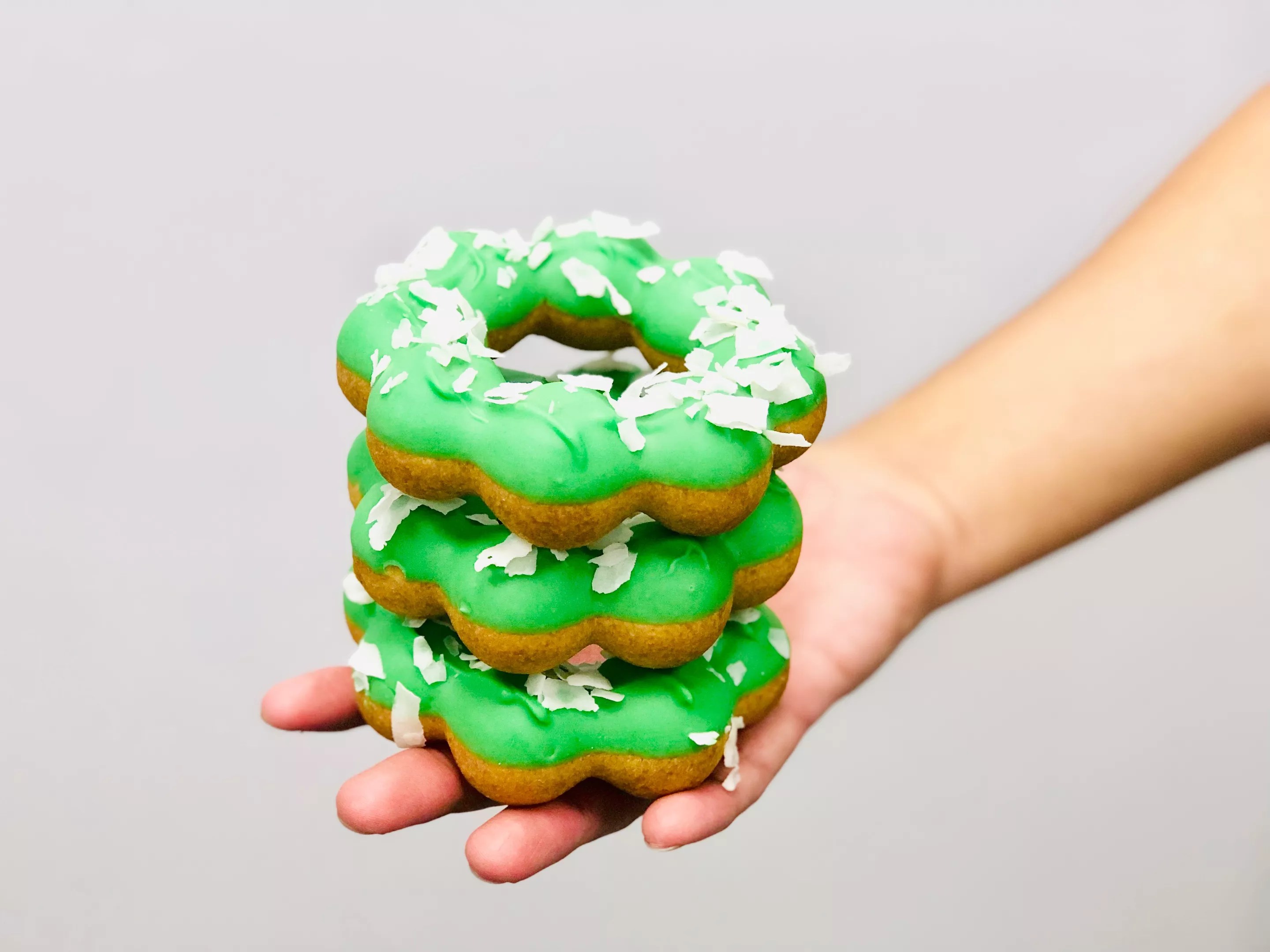 Pandan-coconut mochi donuts