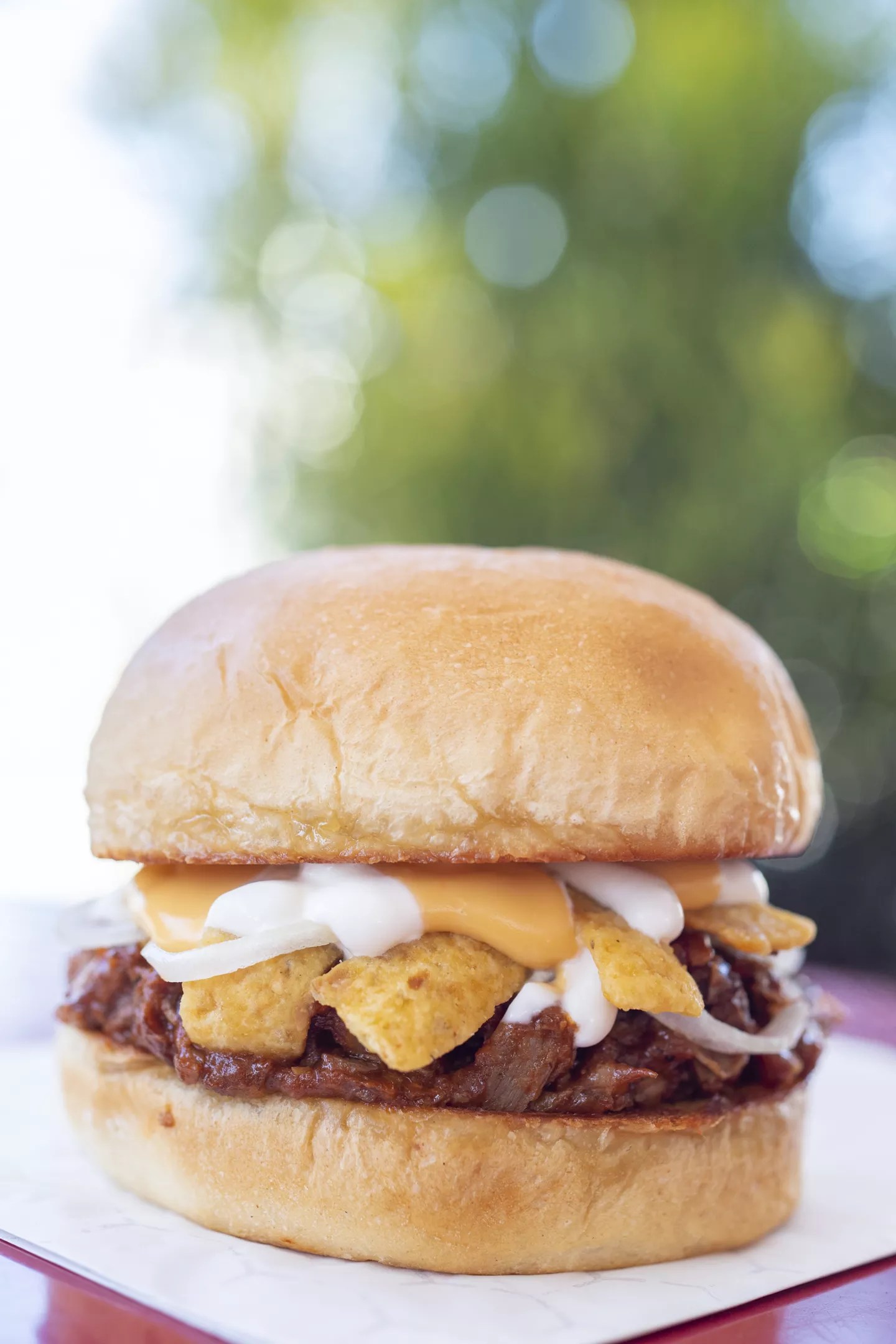 Barbecued Frito chili pie sandwich