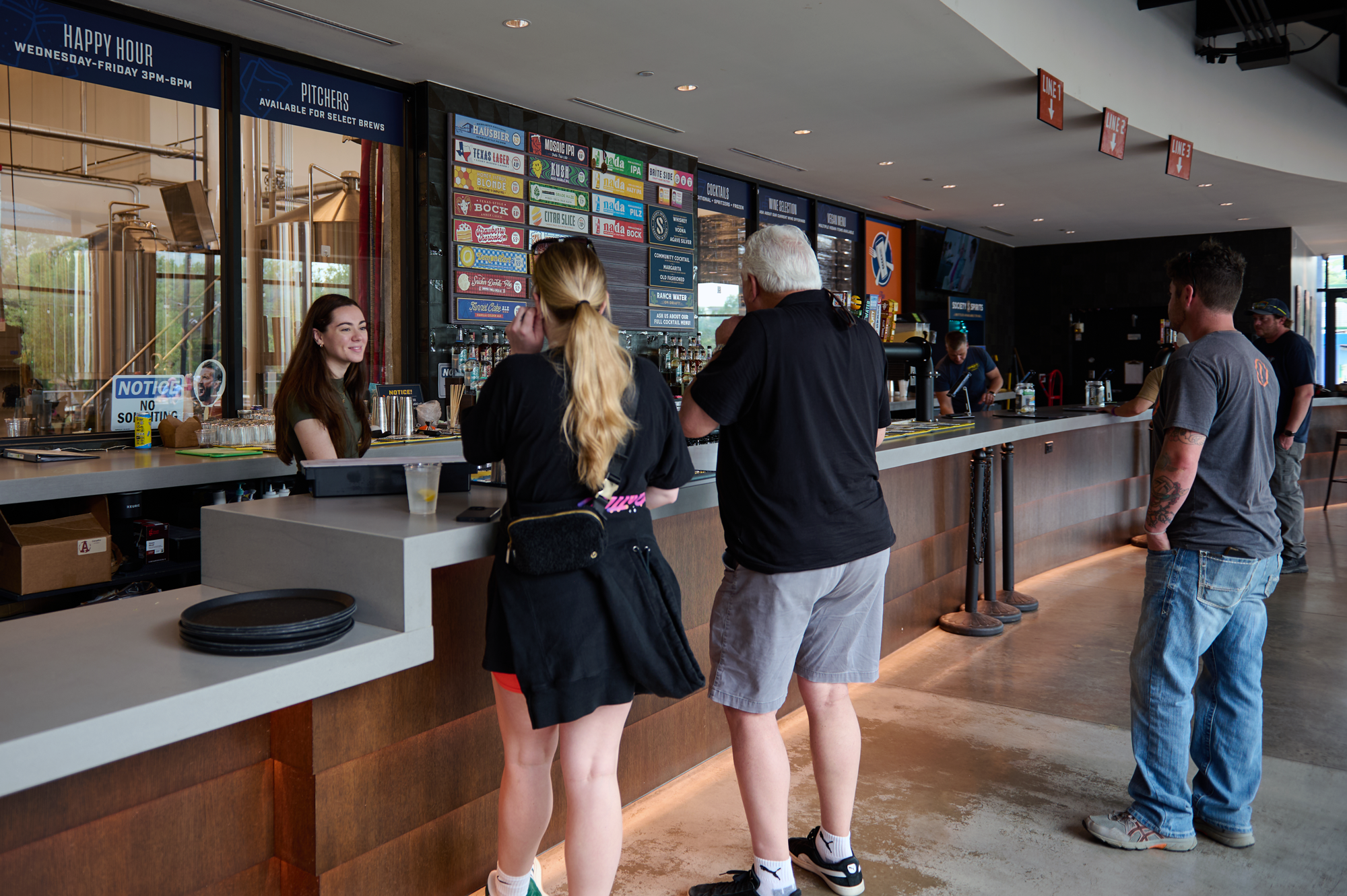 During the pandemic, Community moved into this large modern space just west of Interstate 35 and north of downtown. It’s a full-production facility – all their beer is produced, packaged and sealed with a kiss here – and there’s a restaurant and taproom. On weekends, doodle dogs and their families fill the courtyard.
