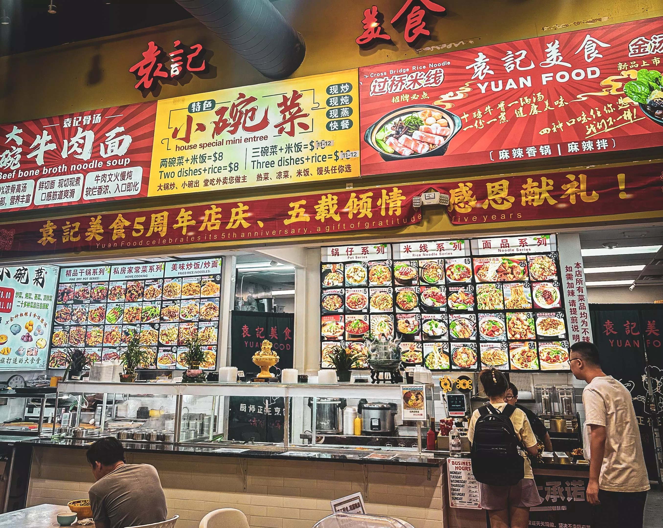 Yuan Food is a stall with colorful photos of dishes ranging from pork intestine noodles to boiled fish. Its regional specialties hail from Dongbei and Shandong, where downing a hearty bowl of noodles is the best way to ward off winter’s chill. More options = more reasons to return.
