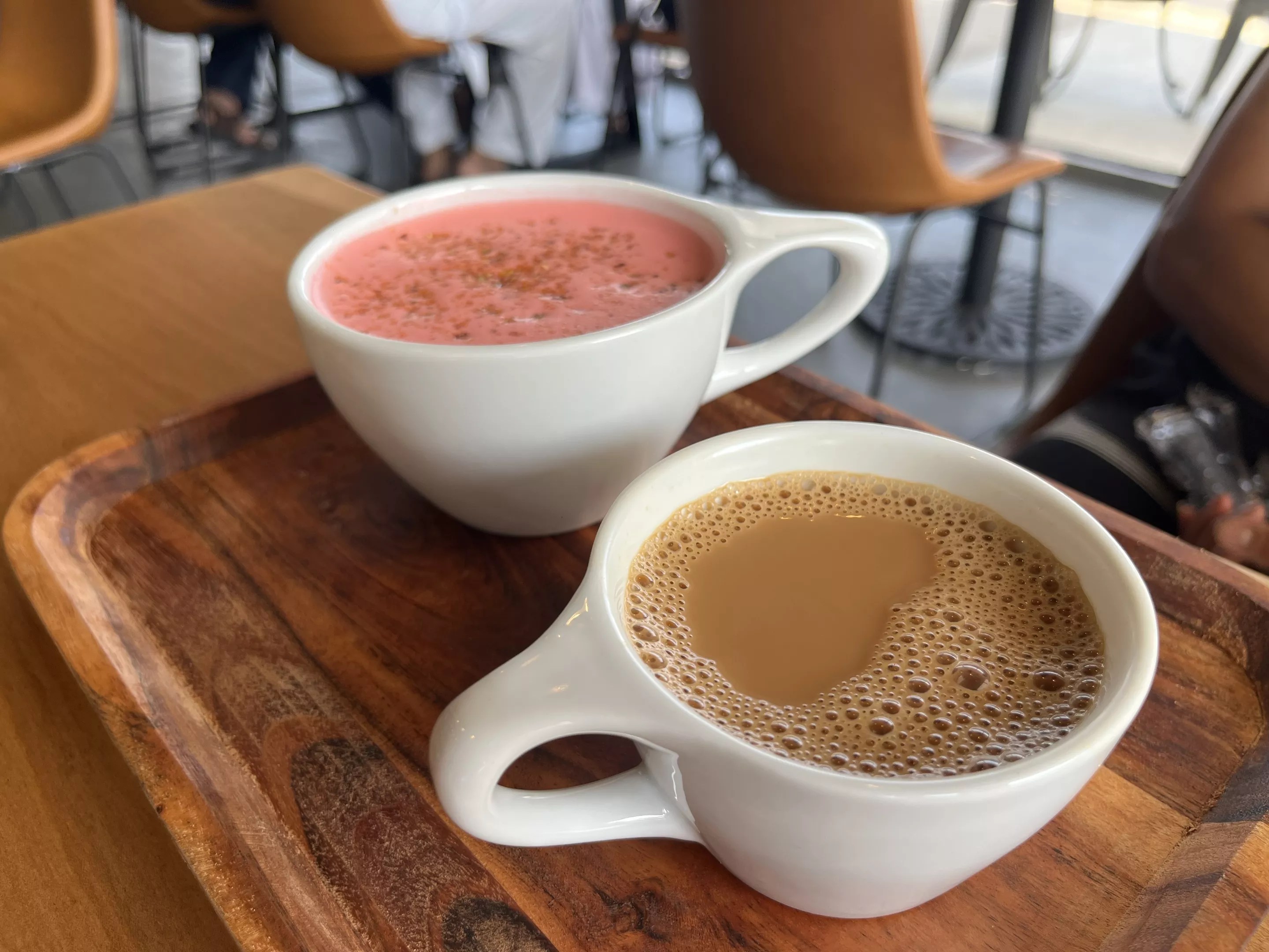 But the shop’s most notable drink (in flavor and aesthetic) might be the Kashmiri chai. Inspired by the flavors of Kashmir, the tea is tinted a dusty pink color, topped with pistachio crumbles that mingle nicely on the tongue and has an unexpectedly foamy tea base.