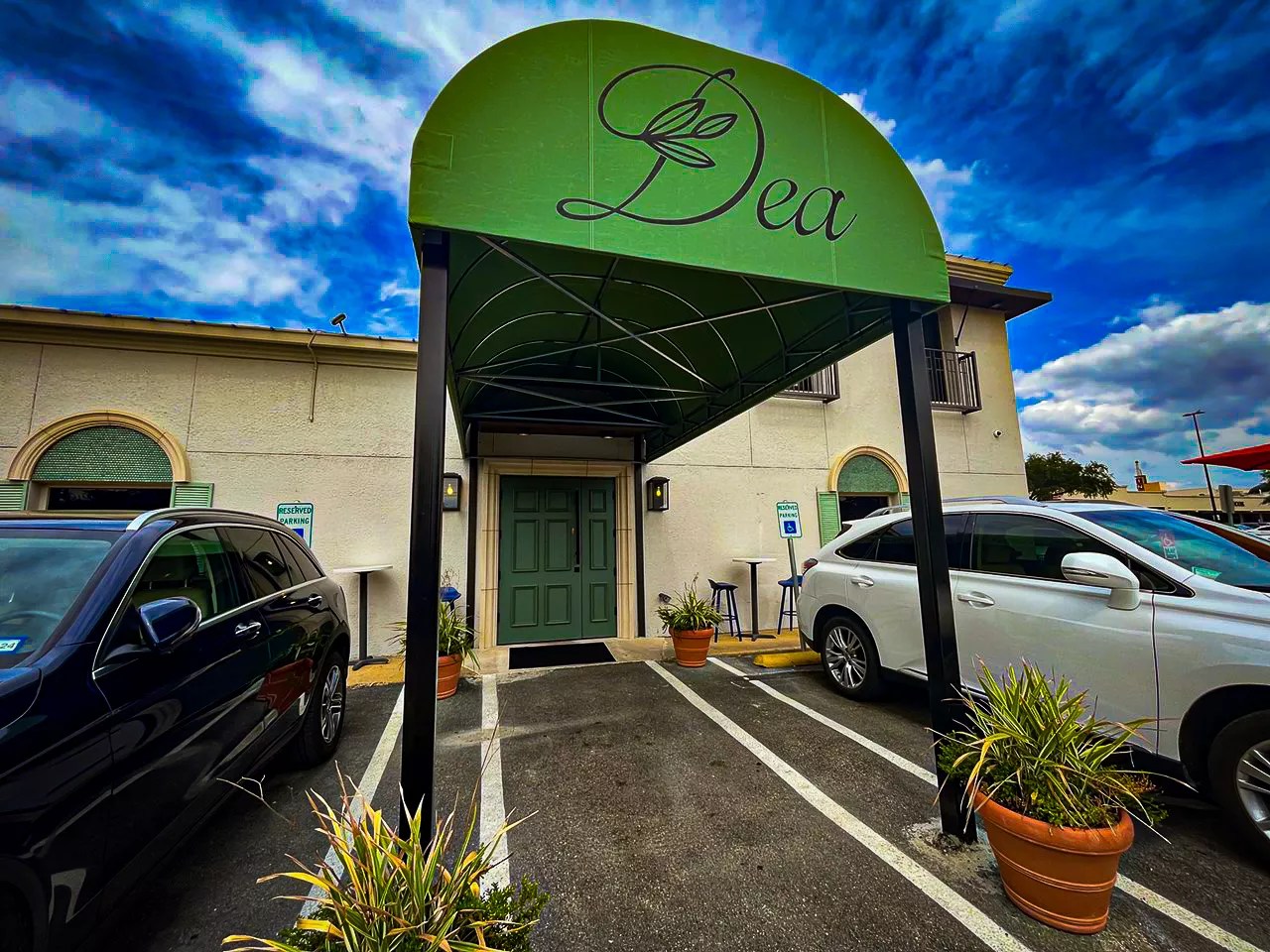 Dea is the third concept from Lynea Fearing and Tracy Rathbun, who also brought us Shinsei and Lovers Seafood Market. You’ll find it at the intersection of Inwood Road and Lovers Lane under a green awning that bears the name. Even in the earlier hours of the day, the place maintains its allure, with the sounds of clinking cocktail glasses and guitar strumming (classic flamenco from Ruben Martinez on this visit) providing a pleasant backdrop.