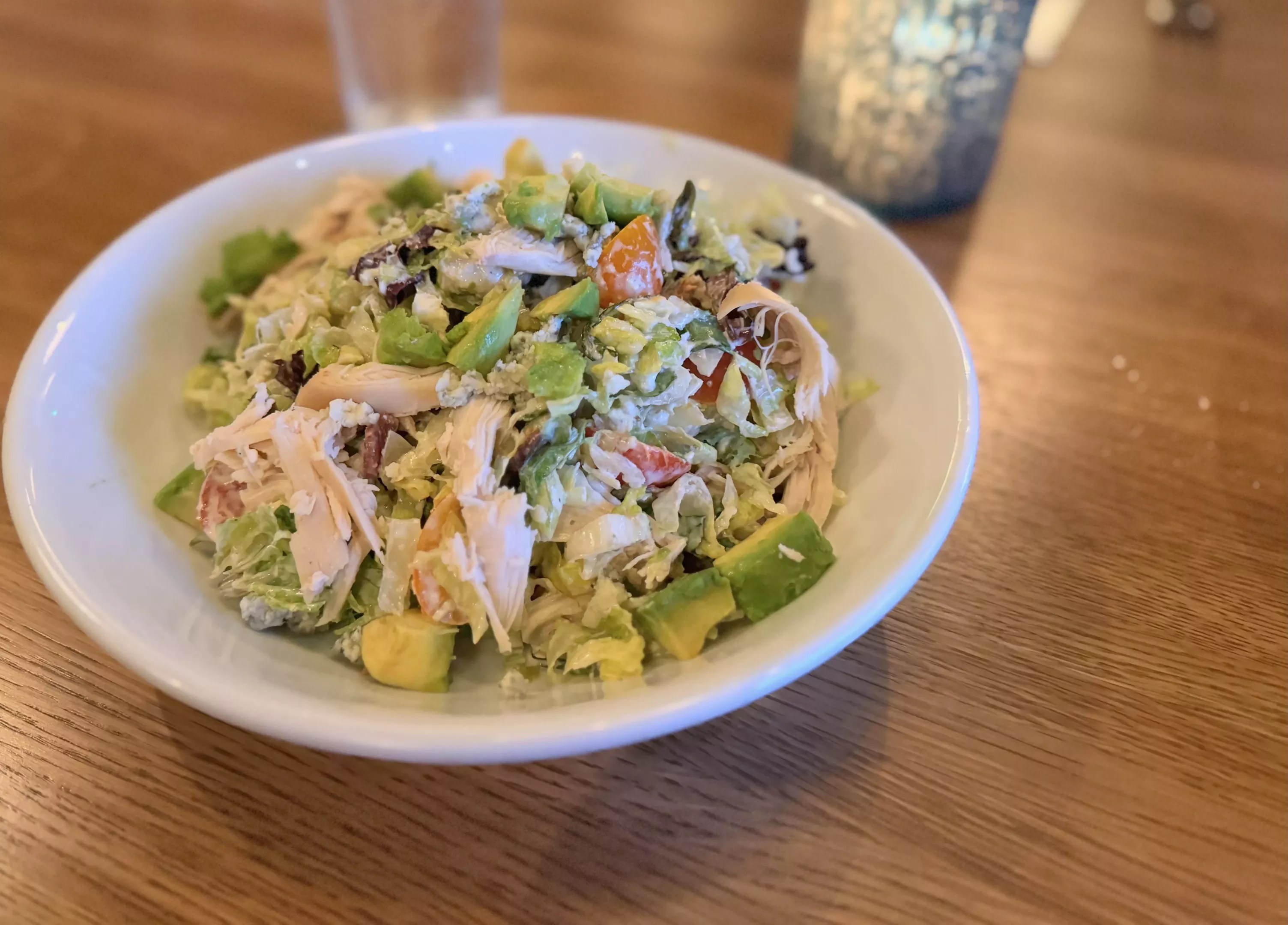 A chicken avocado salad ($18) is fresh and clean with pulled rotisserie chicken, big chunks of avocado, bacon and ranch dressing. This mature bowl of greens pulled us back from our chicken strip dalliance and was large enough to share.