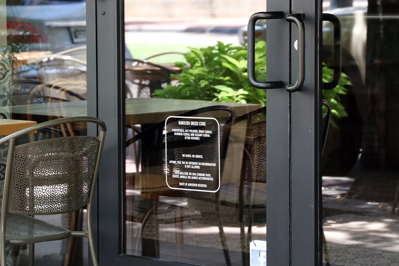 A dress code sign on the door at Baboush.
