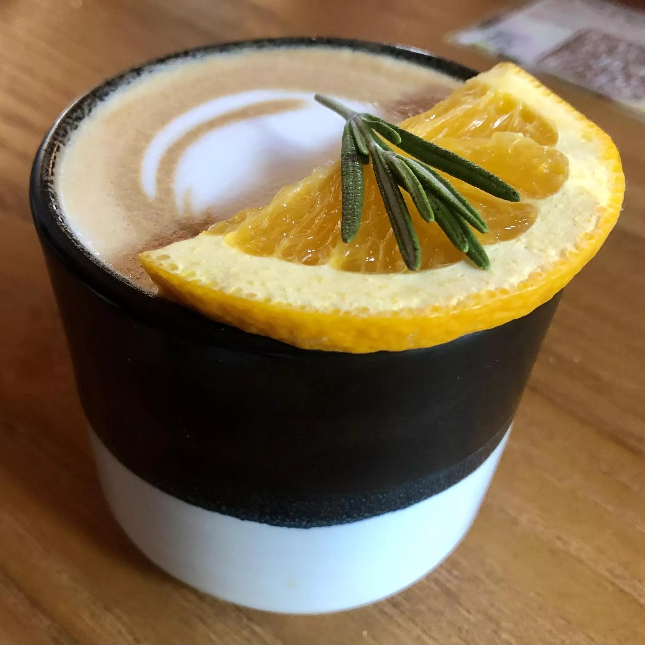 The tangerine latte ($7.50), served with a slice of tangerine and a little sprig of rosemary, frothy milk, espresso and a perfect hint of citrus flavor, might’ve been our favorite. It had us bargaining with each other as well.