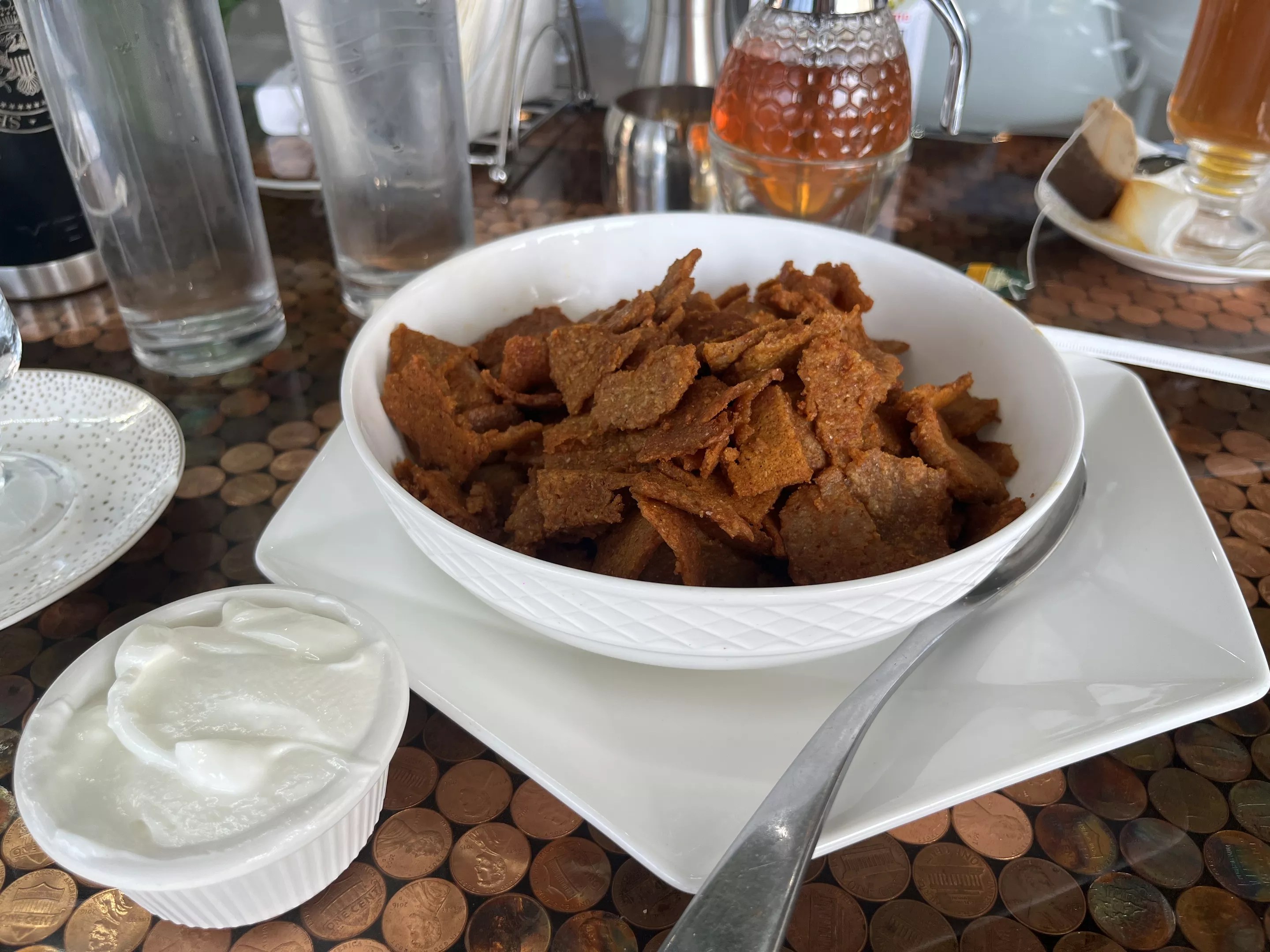 The breakfast Kitcha Fit Fit, along with a side of yogurt.