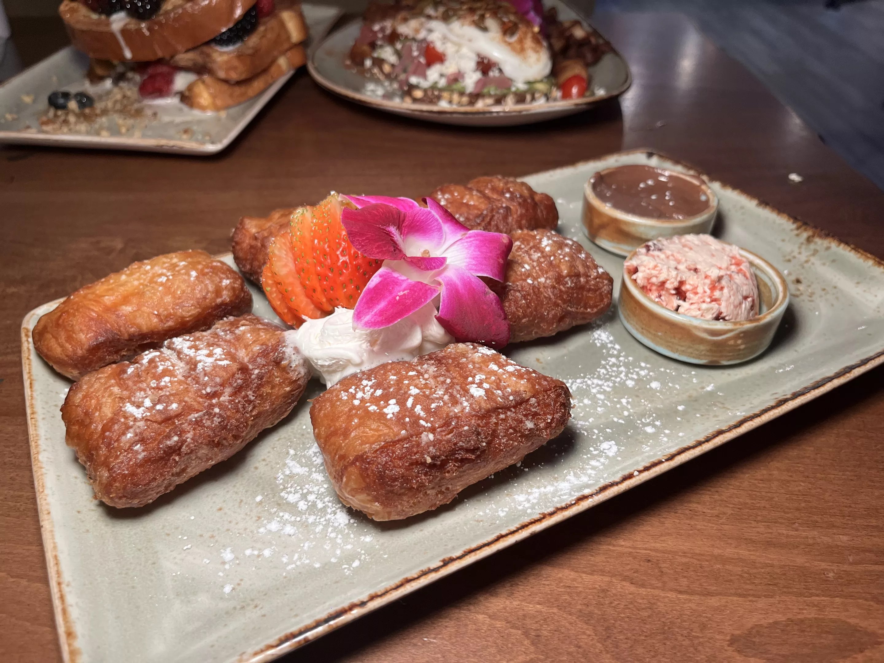 We spotted croissant beignets nearby, which – like everything here – come in shareable portions and with a camera-worthy presentation. Unsurprisingly, it took us just one order of the specialty dish to understand the dining room buzz. They might look like regular beignets on the outside, but the Fairview Farmers rendition of the classic Southern brunch delicacies cave unexpectedly into layers of flaky croissant dough. They’re served crisped and warm with a side of whipped lingonberry butter.