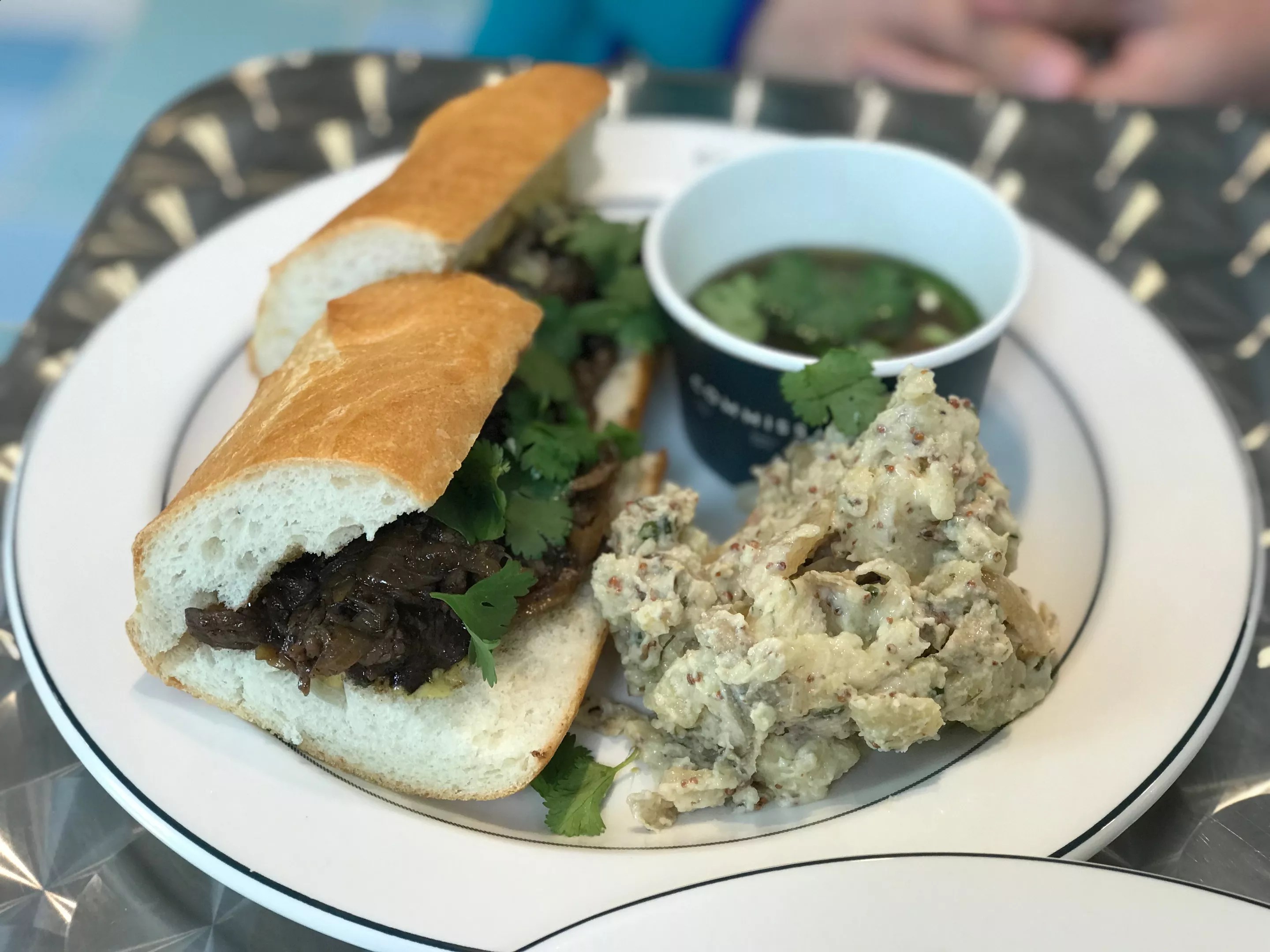 Commissary’s French dip () is accented by Vietnamese flavors highlighted by the pho broth served in lieu of au jus.