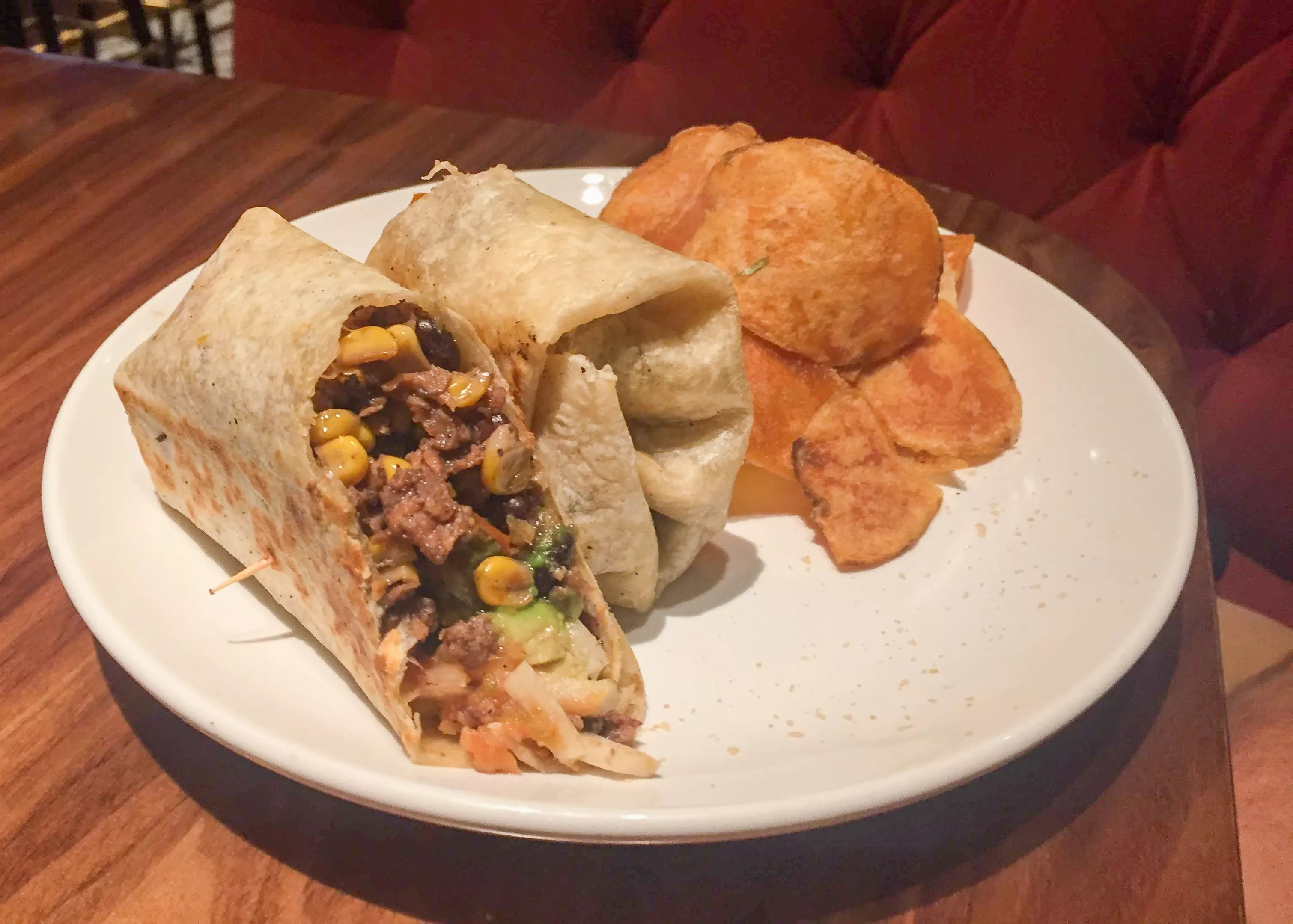 There are vegetarian and vegan options, so meat-avoiders are welcome. The Southwest wrap was predictable, yet tasty ($12.99). It’s made with Beyond beef and packed with veggies: jicama, pico, black beans, roasted corn, avocado and salsa.