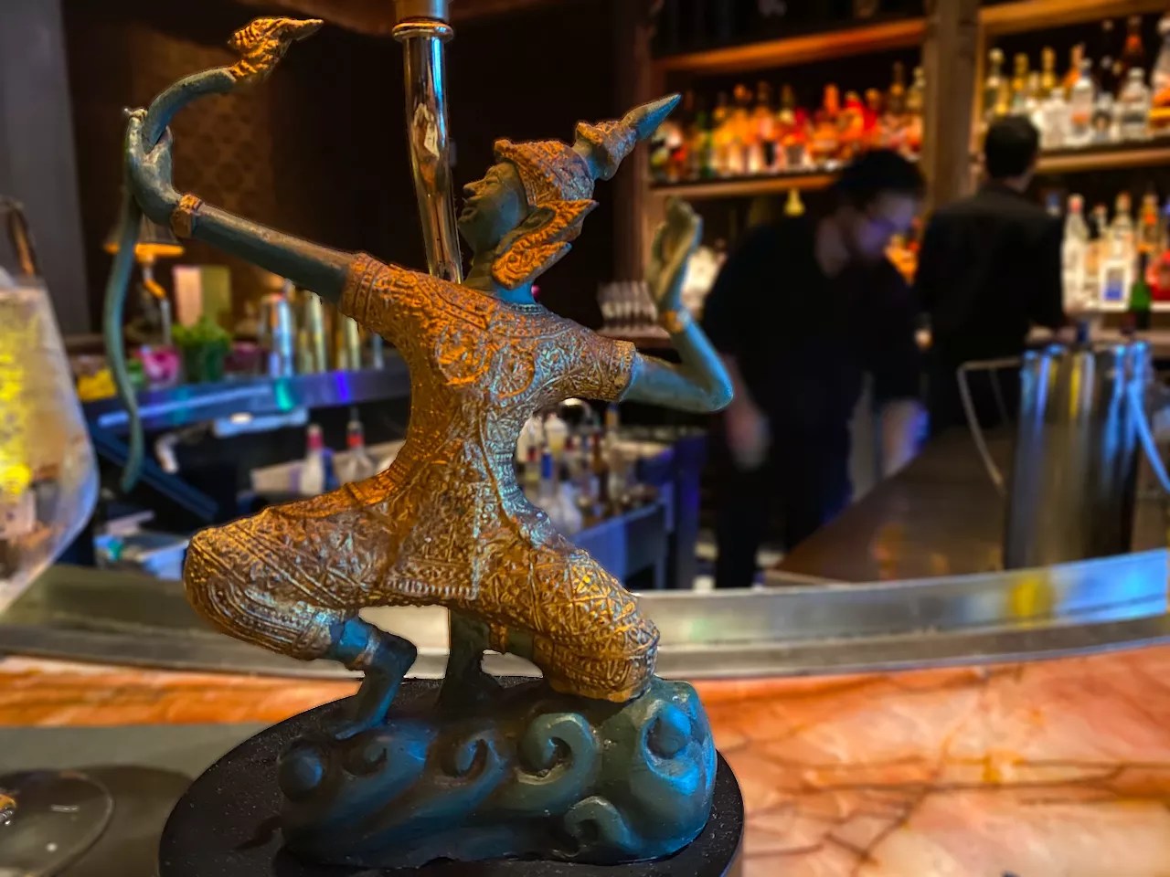 Speaking of tables, an important note here: There are six or so tables in the middle of the dining room, but along one side are curved, plush booths that are great for dates. On the other side are semi-private, ornate wooden booths that look like a fun spot for four or five diners. We still like the horseshoe marble bar the most, though.