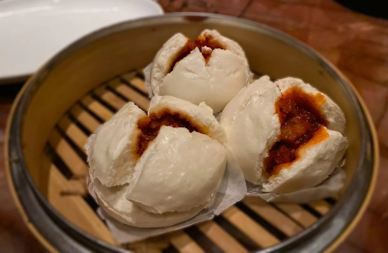 We also ordered steamed buns, which come three to an order for $14. These big buns are stuffed with saucy cubes of char siu braised pork. These were filling and had that perfectly odd, yet amazing, fluffy dense texture of steamed buns.