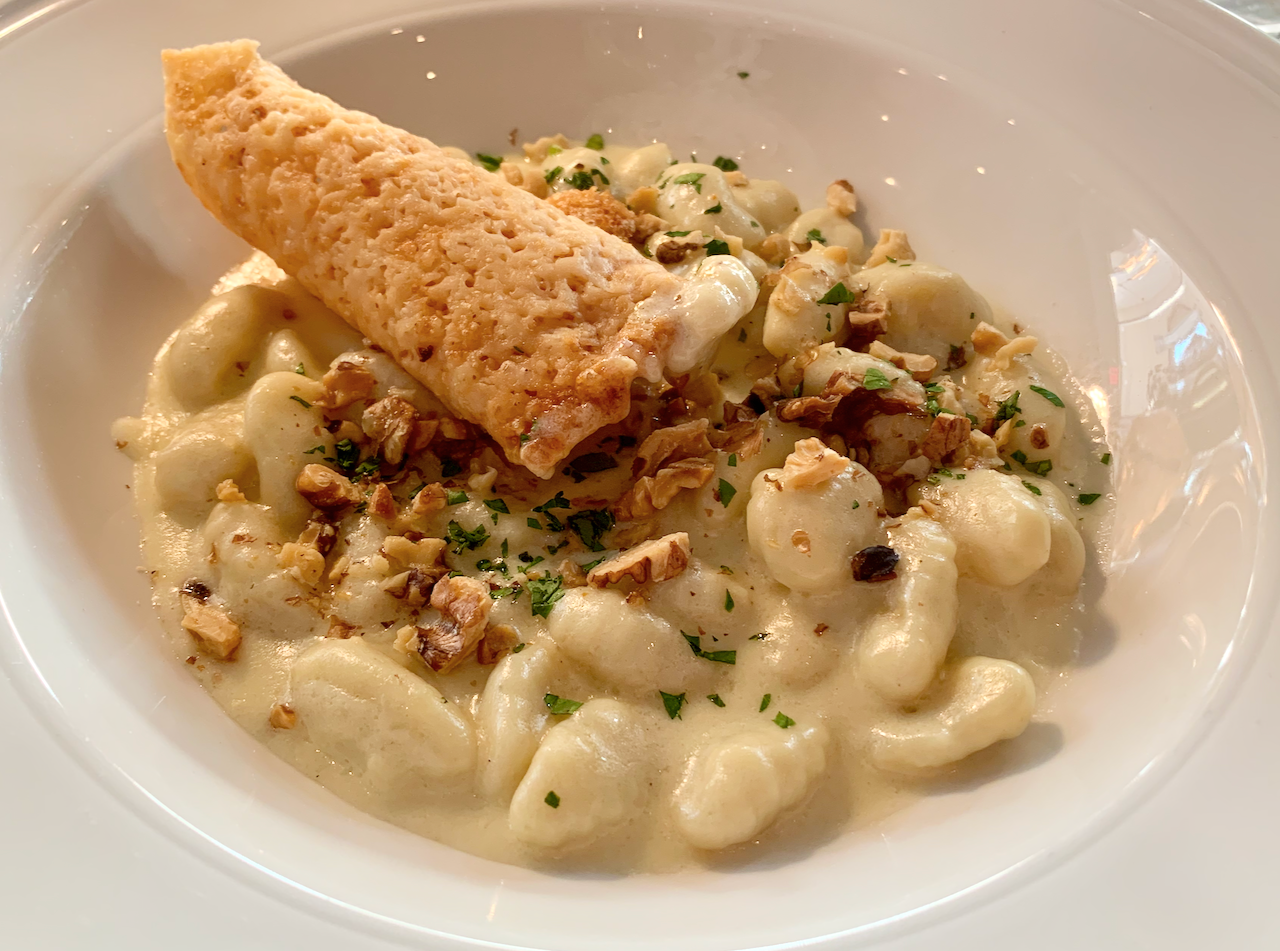 For entrees, we chose the gorgonzola gnocchi ($25), which is comfort food at its best. The dumplings were cooked al dente in a rich creamy sauce with toasted walnuts.