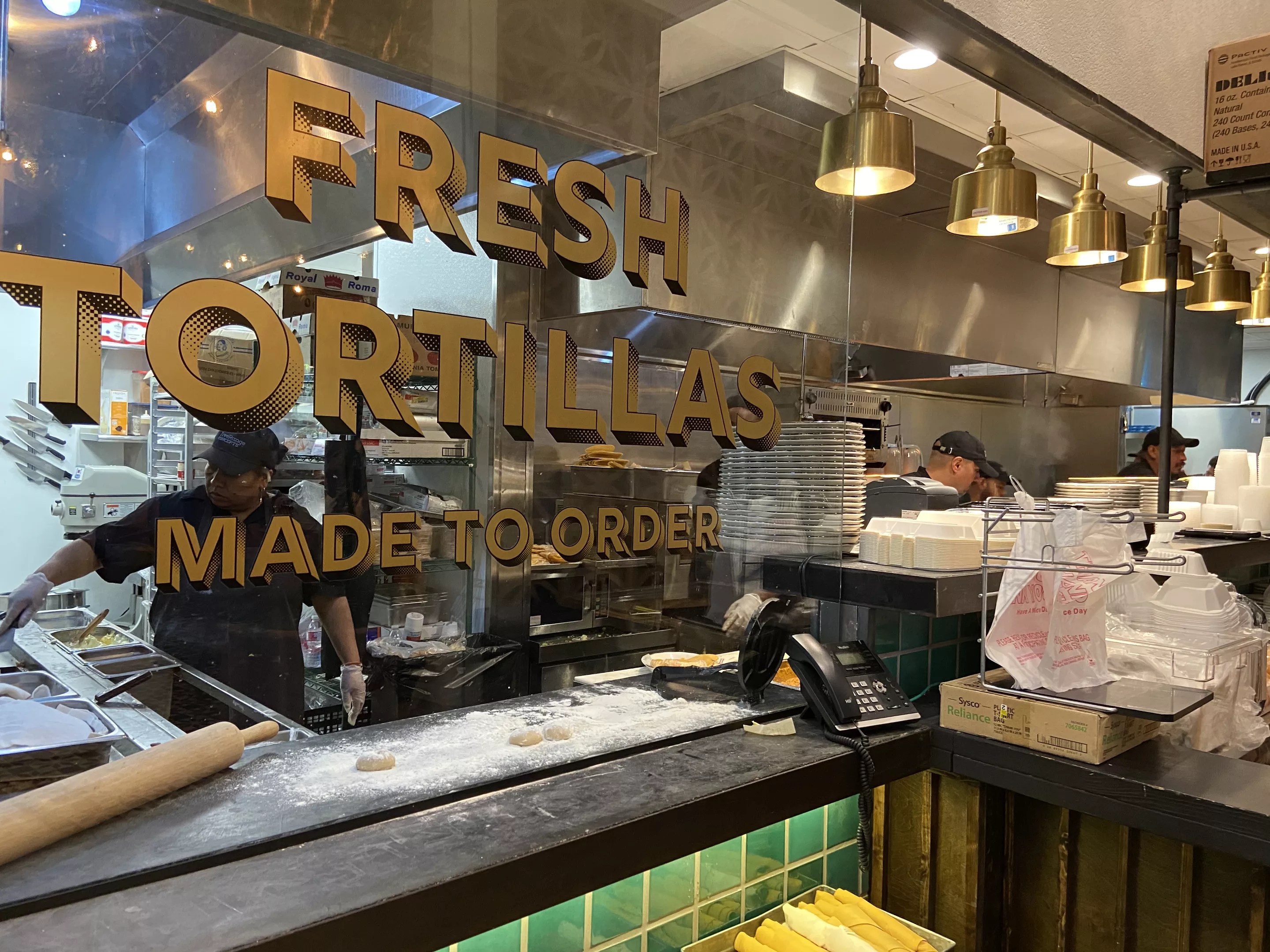 Your eyes won’t know where to focus once you walk in the door. Maybe start at the 20-foot-high shelves full of tequila bottles, or straight up to the greenery hanging from the ceiling. If you move to your table too fast, you’ll miss the window into the kitchen reading “FRESH TORTILLAS MADE TO ORDER.”