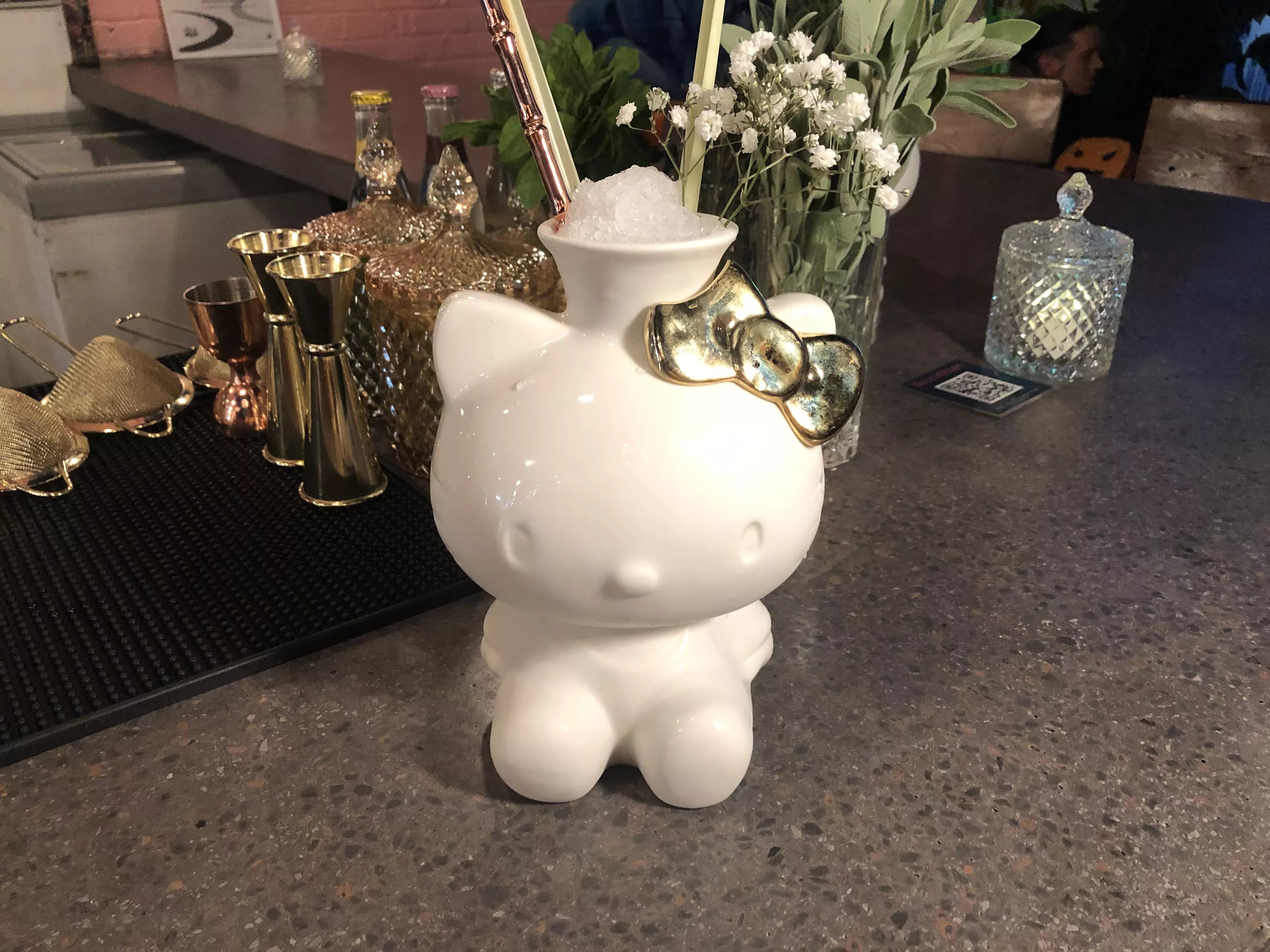 For craft cocktails, we recommend the Tokyo a green blend of Chartreuse, shochu, Luxardo and wasabi, garnished on the stem of the glass with a mini bouquet of ginger, which Khanna recommends you eat before drinking the cocktail to cleanse the palate ($16). Equally as good is the Osaka cocktail made with umeshu, cherry blossom, Roku Gin, sage, salted pomelo and served in an adorable Hello Kitty ceramic glass ($16).