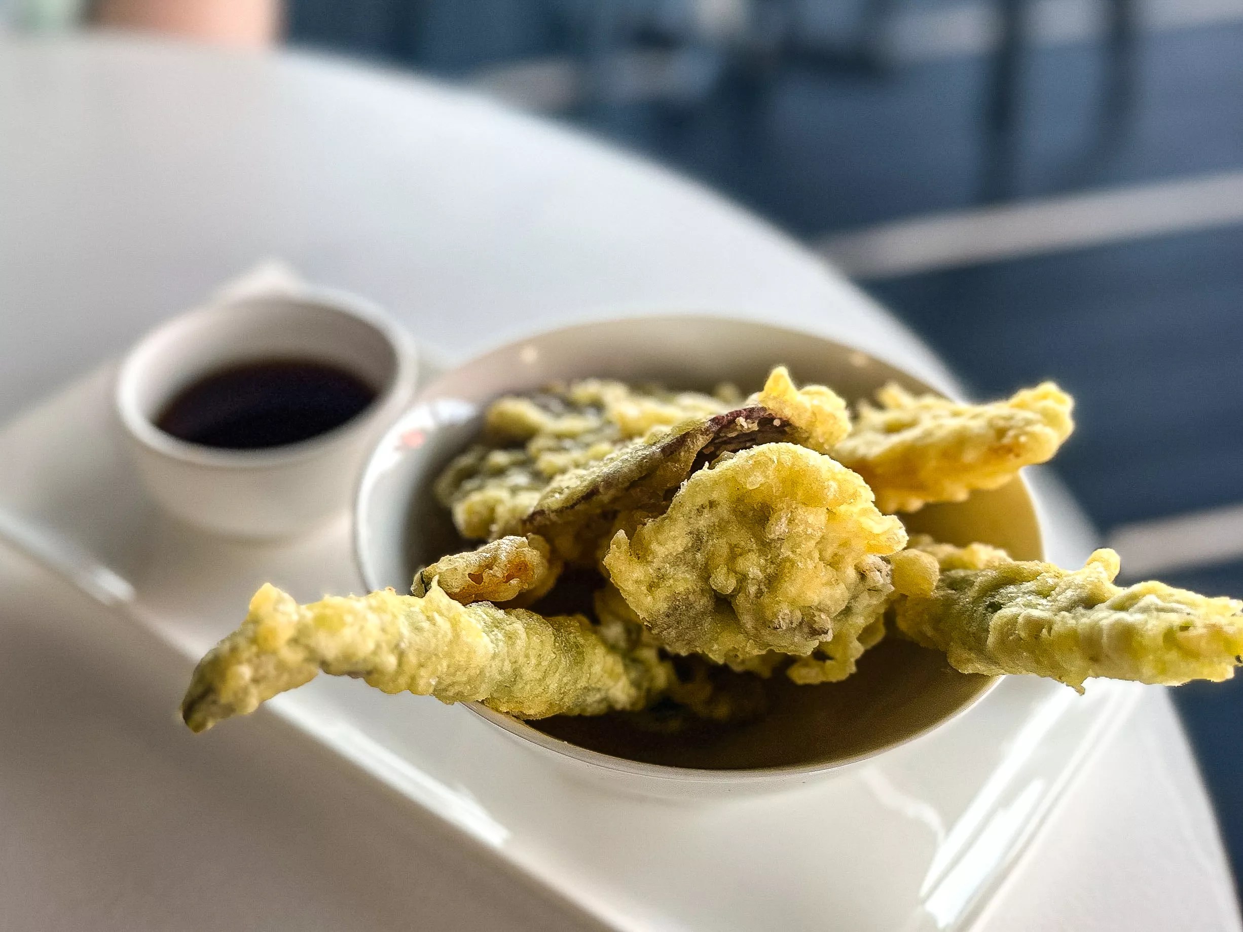 Vegetable tempura: seasonal vegetables such as asparagus and squash with tempura sauce