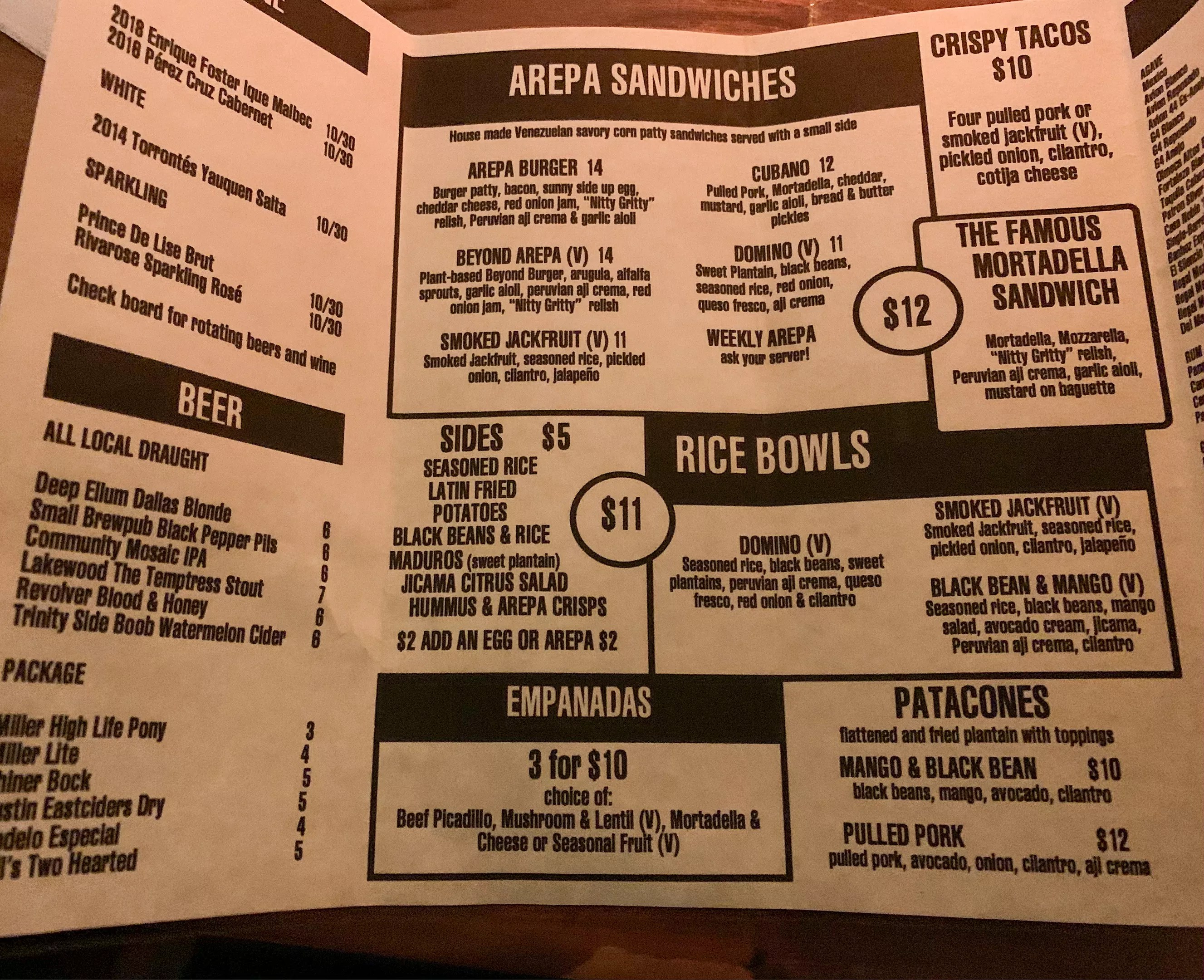 They’ve done a couple of different things in the space, such as pop-up brunches, but now there’s a more permanent menu at the Deep Ellum spot, offering some arepas that made us stay for longer than just a drink.