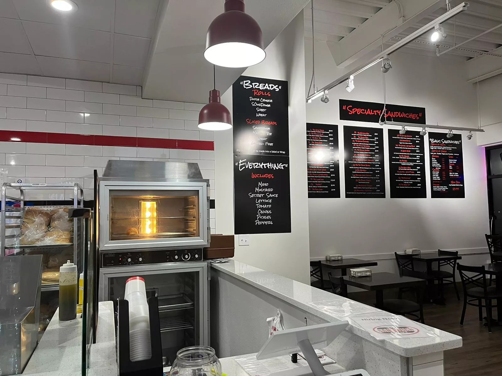 Sandwiches come hot and toasted, straight from the oven.