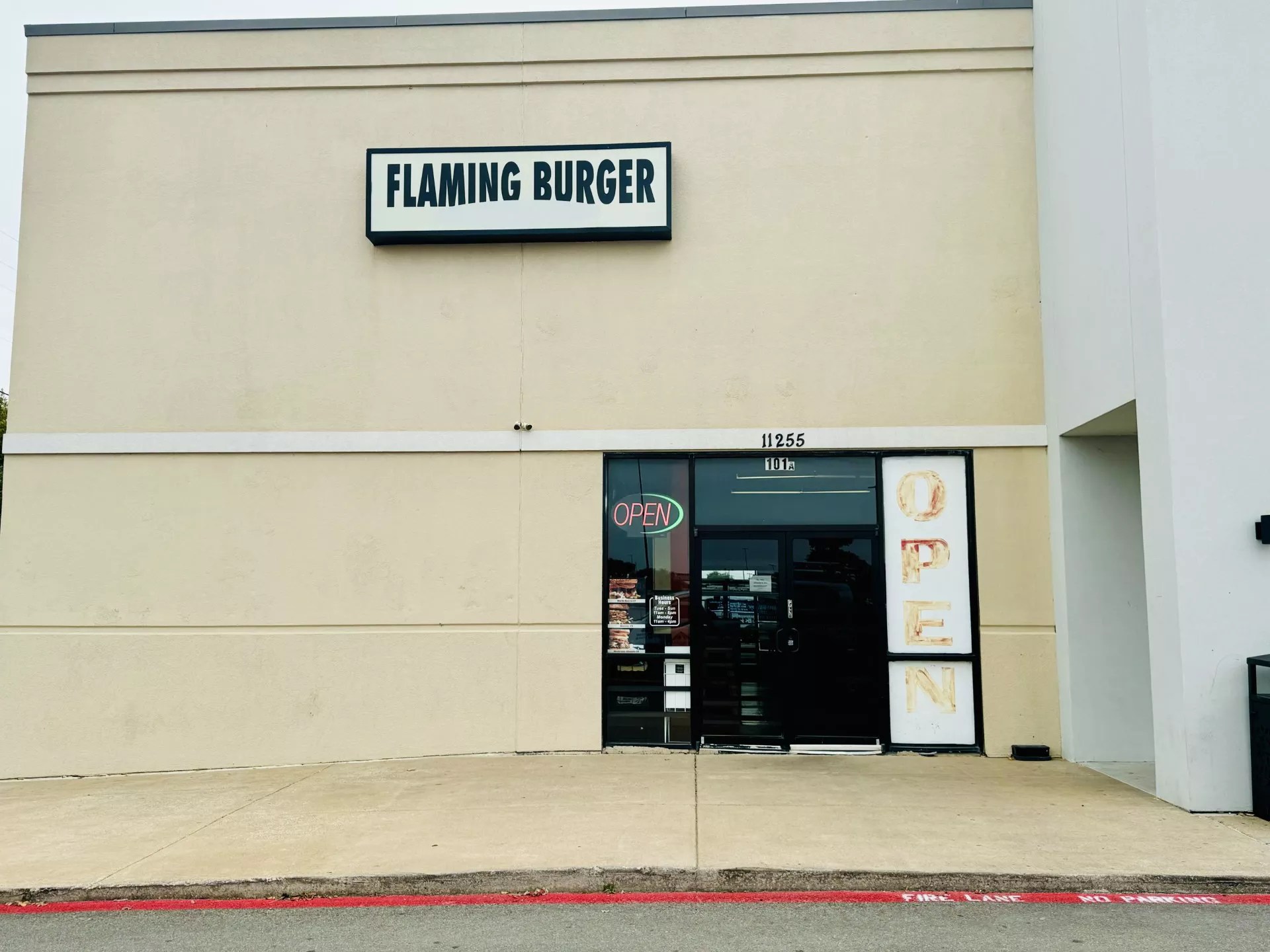 From the parking lot, Flaming Burger appears basic. Really basic. The space sits next to a Burlington Coat Factory with a small, nondescript white sign above the door. You’d barely know Flaming Burger was there unless you’ve been before.