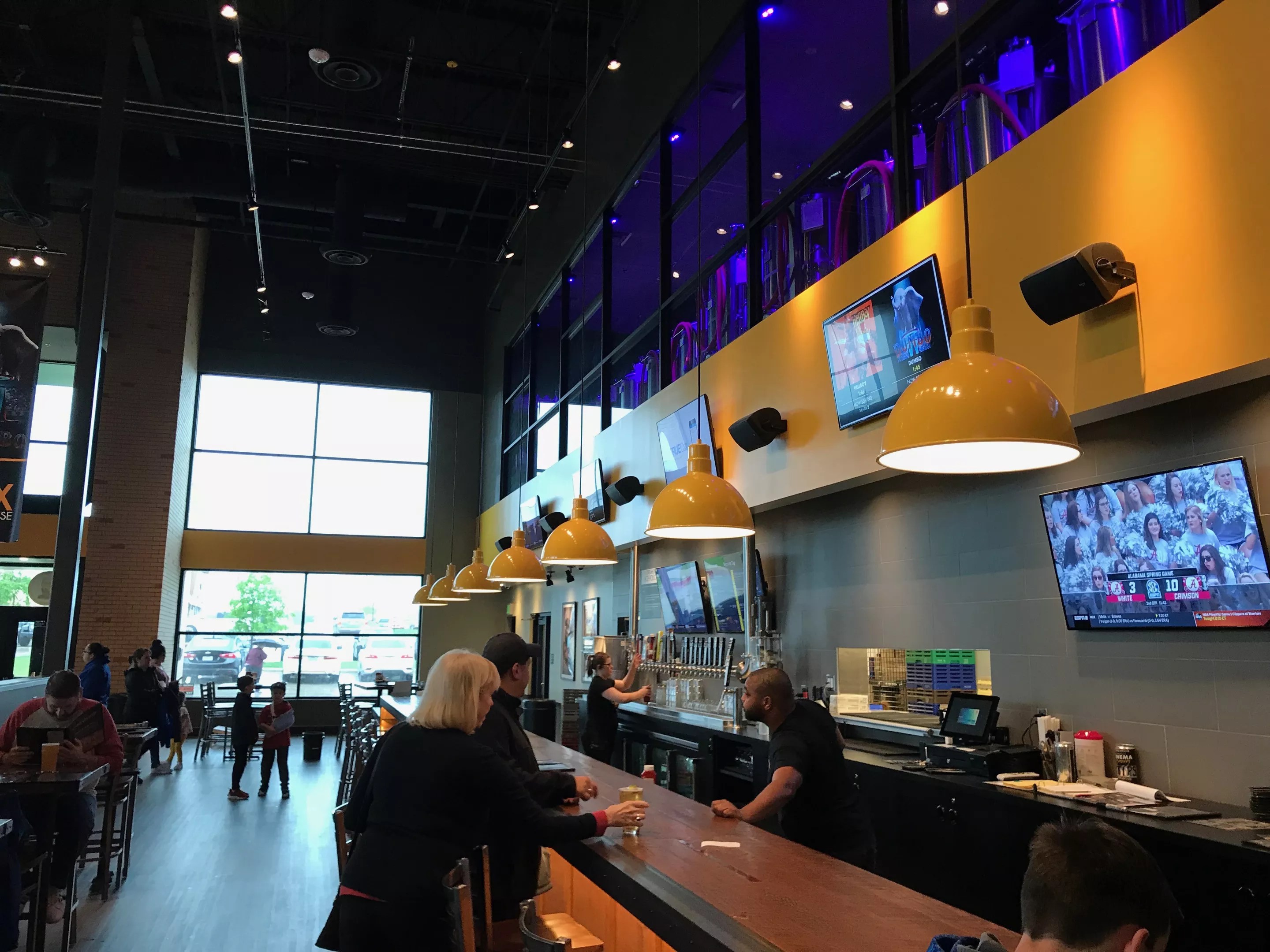 Taking up an entire side of the cavernous lobby, the bar laid bare what it has to offer, with more than 40 taps on display and a row of a dozen or so brewing tanks easily seen through mammoth windows high above the tap wall. The overall decor aesthetic might’ve been AMC, but the key visual elements were all ABV.