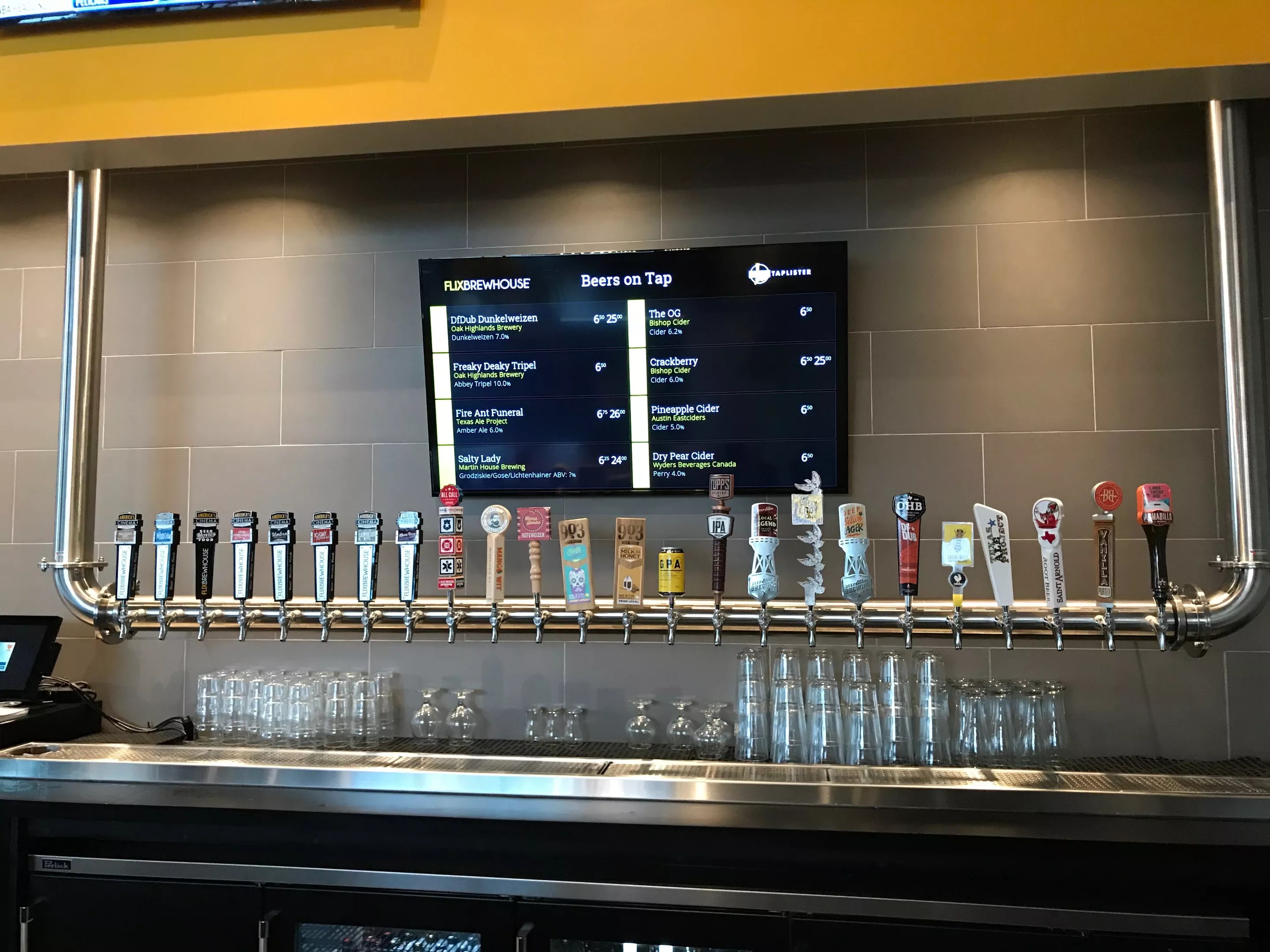 Flix’s tap wall has local craft beers along with beers brewed in-house.