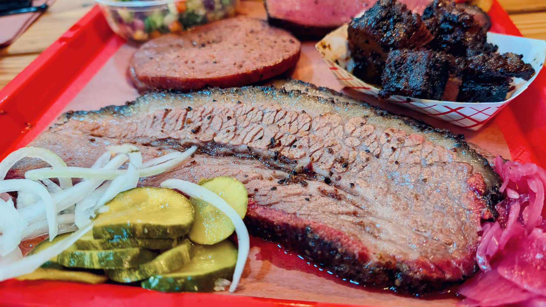 We are served around 11:20 a.m., which, given there were at most six groups ahead of us, makes me wonder what time the people at the back will even see the remaining scraps. I will say, having seen Terry Black’s Disneyworld of barbecue in downtown Austin, there must be a way we can speed up the barbecue lines. I know this is a whole philosophical discussion about customer service (and, more controversially, creating long lines), but the number of barbecue places with 50 people in line and one person chopping meat … anyway, I digress.