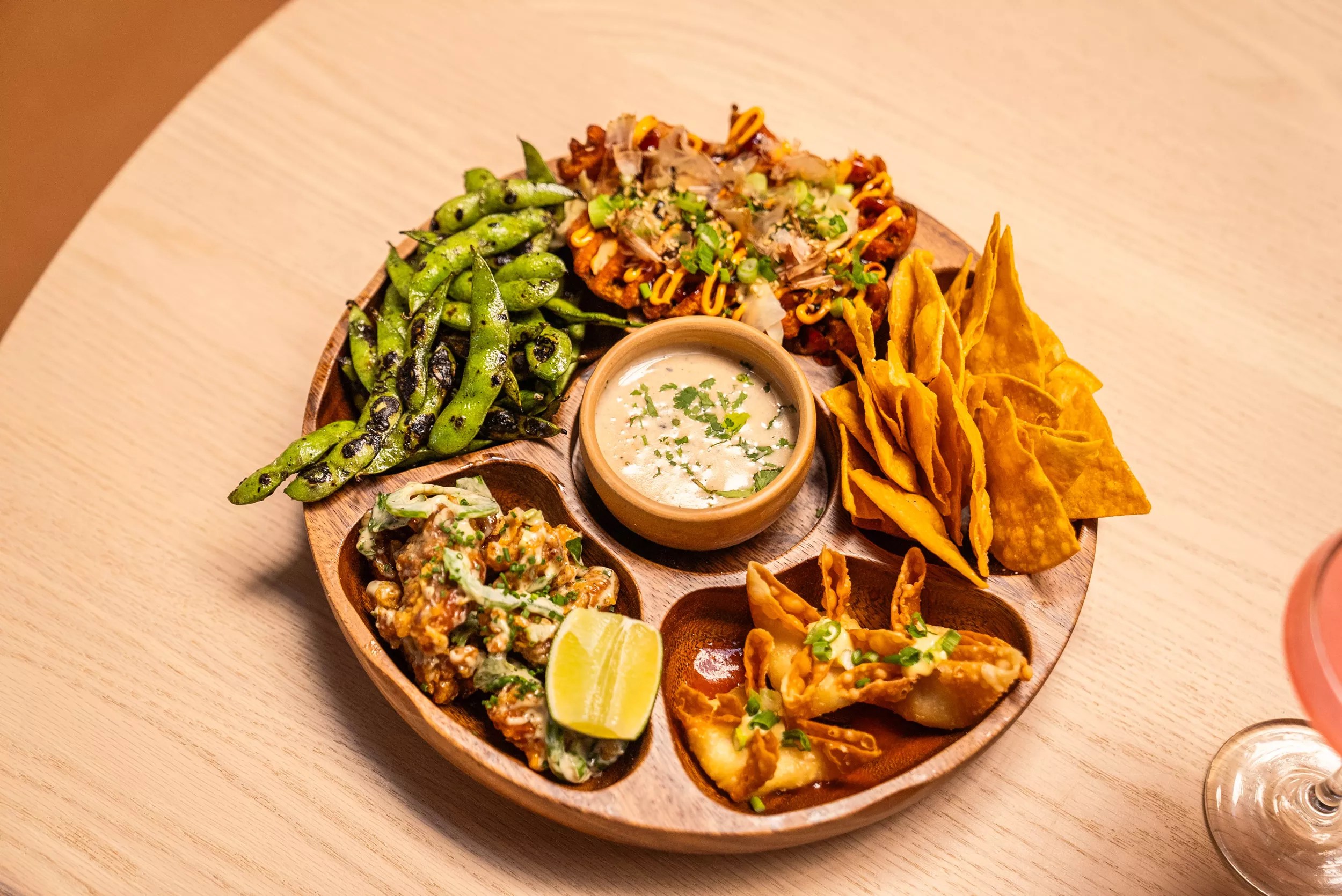 A peek at ‘The Cure’ a shareable platter with salty favorites, including a crab rangoons.