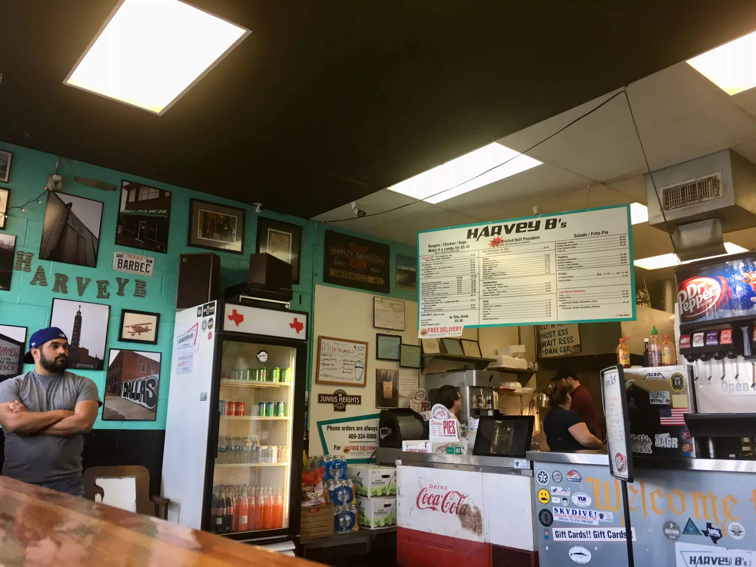 The food’s one of the reasons Harvey B’s doesn’t feel like a “new” joint. The neighborhood feel of the place is another reason: Guy’s been running Harvey’s kitchen for three years and has lived in East Dallas for three decades. The East Dallas pride is on the walls, including artsy photos of the Egg Roll Hut across the street.