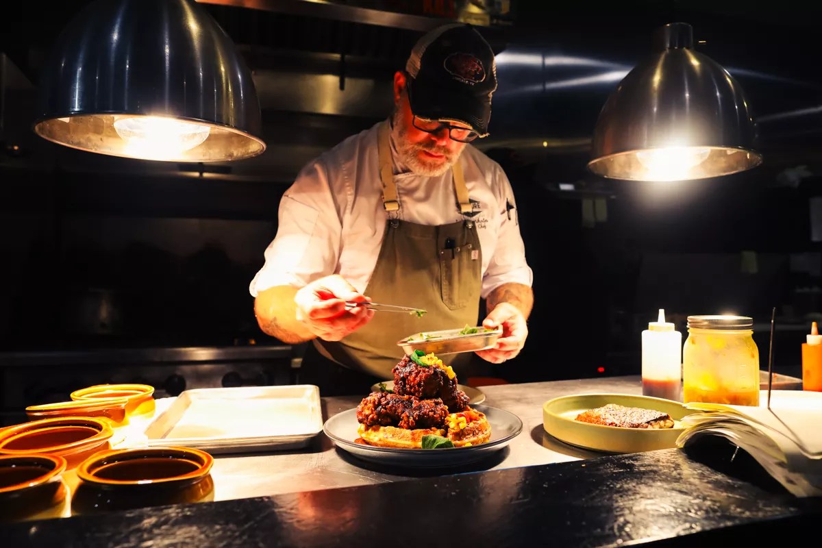 “Travel Texas teamed up with Visit Tyler, and they were organizing a trip to Atlanta to showcase Texas food. They picked five cities, and Tyler was one of them, where they asked the cities to bring their best chef to do something that’s representative of your area,” McWhorter begins. “So Diann Bayes (from Visit Tyler) reached out, and we decided to drive to Atlanta.” McWhorter had the idea to brainstorm how he would define what East Texas food really was during the 10-hour drive.