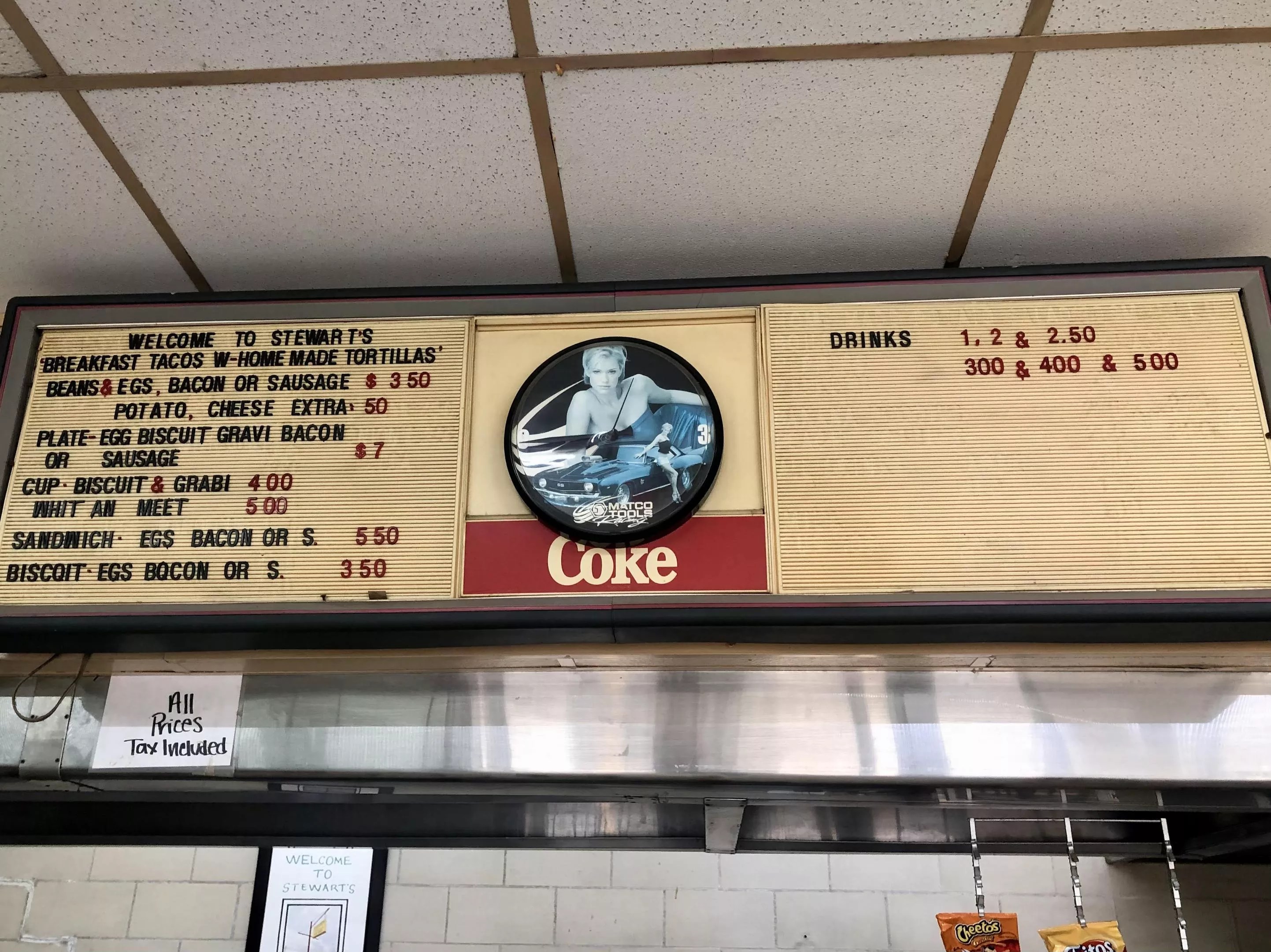 Like the sign says, Stewart’s serves breakfast from 5:15 a.m. to noon. Antique lovers will be mesmerized by this old stove.