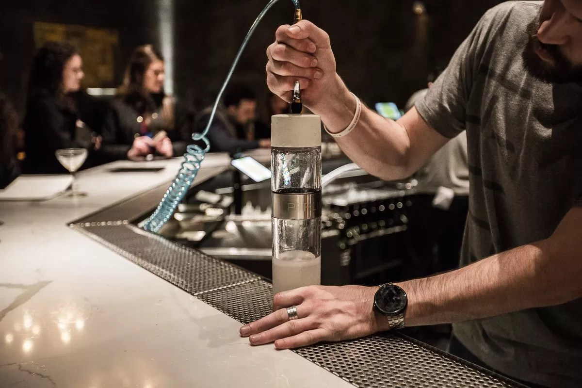 You won’t spot much of the technology used at Hide, but you will occasionally witness bartenders using machines like this one, which injects the gin and tonic with high-grade carbon dioxide to carbonate the drink.