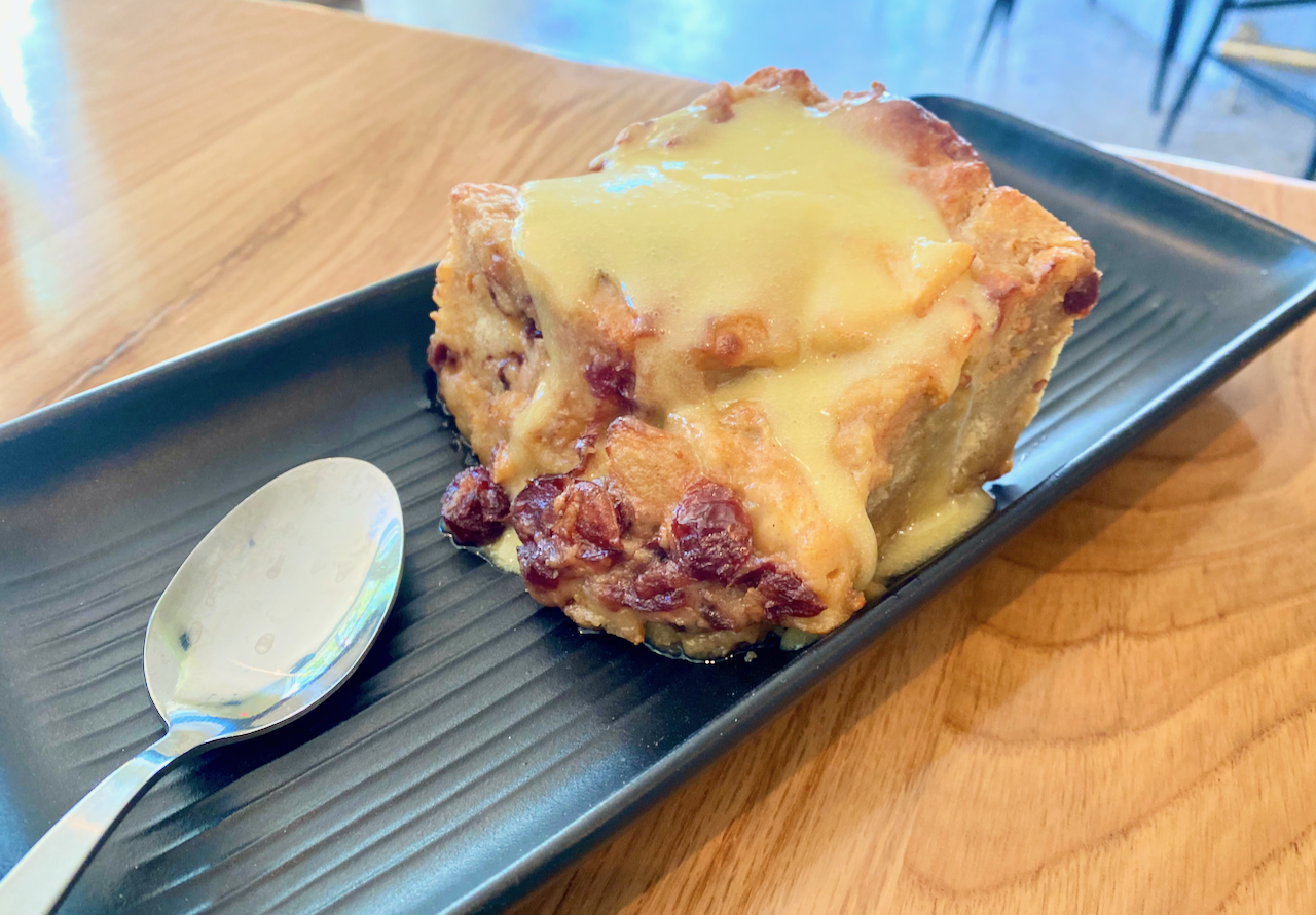 And since we ordered a salad, we deserved to finish off the meal with a well-sauced bread pudding made with bourbon, pears and tangy cranberries.
