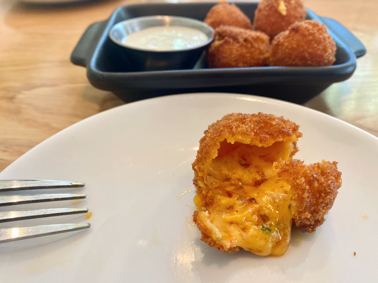 Fried pimento cheese balls have a touch of heat.
